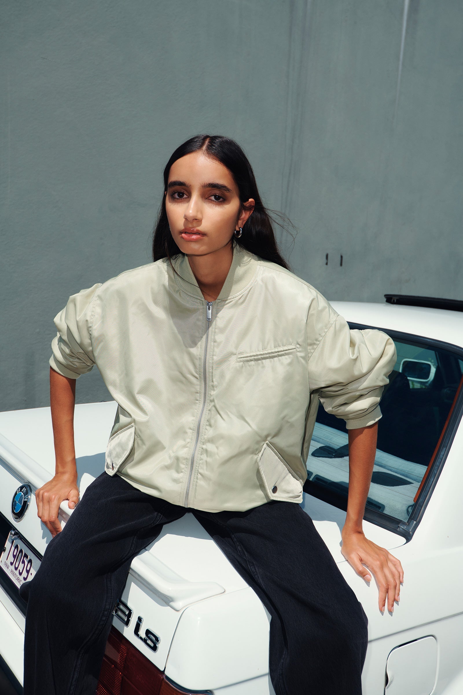 - Oversized bomber jacket