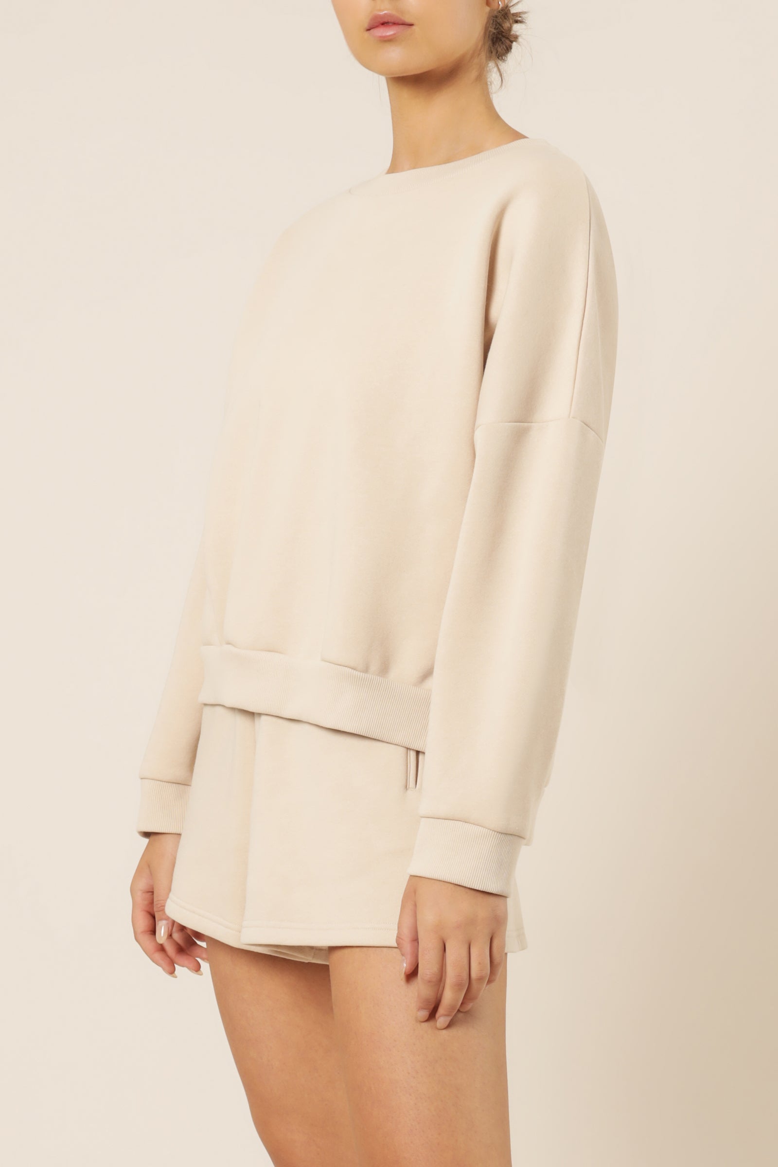 A classic shape from our permanent Carter Collection, the Oversized Sweat is crafted from our signature washed fleece with an extra soft handfeel. The silhouette is oversized with a classic crew neck, relaxed body and long sleeves. Features include a ribbed neckband and sleeve cuffs, with side slits at the hem. Pair with a Carter Short or Trackpant for a matching set.