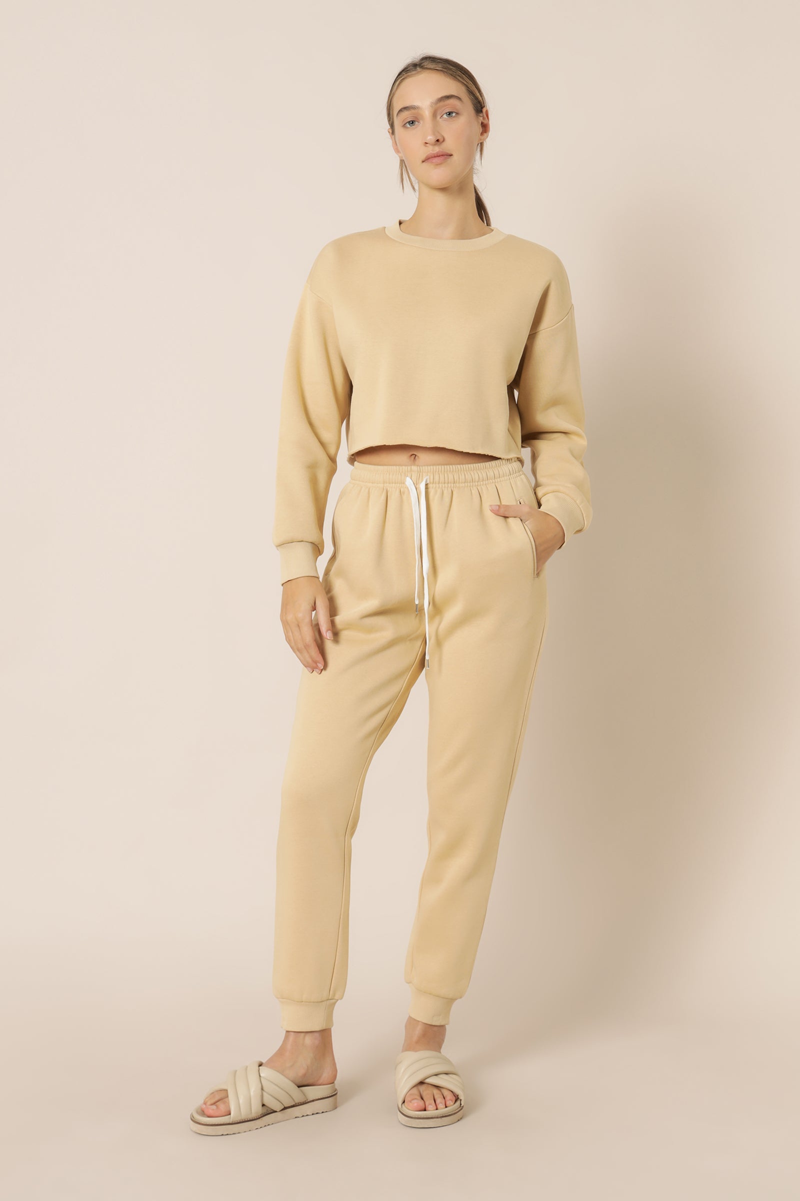 The Classic Trackpant is crafted from our signature Carter fleece, washed down to provide a luxurious soft handfeel. This style features an elasticated waist with a functioning cotton drawcord, side pockets and ribbed cuffs. The silhouette is a slim relaxed leg. Pair with the Carter Classic Crop Sweat for a matching set.