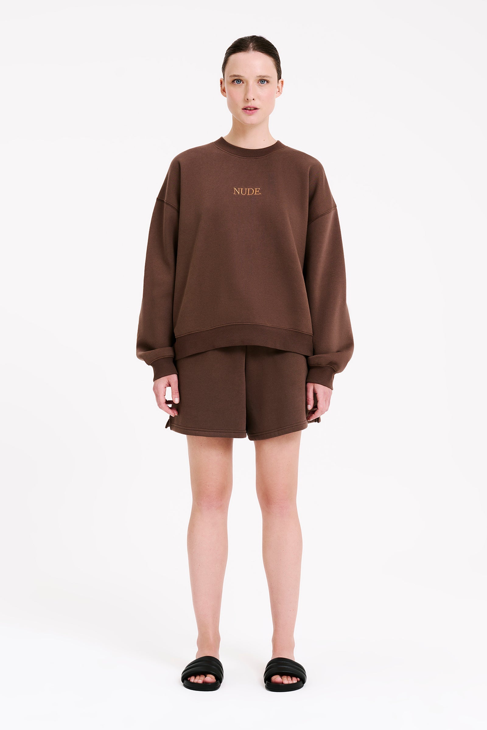 Our signature Carter fleece range crafted from washed fleece with an ultra soft hand feel. This new silhouette is an oversized short finishing mid-thigh and worn high on the waist. Features include inseam pockets, an elasticated waistband with cotton cording drawstring and branded cord ends. This short also features subtle nl. embroidery on the wearer's right side.