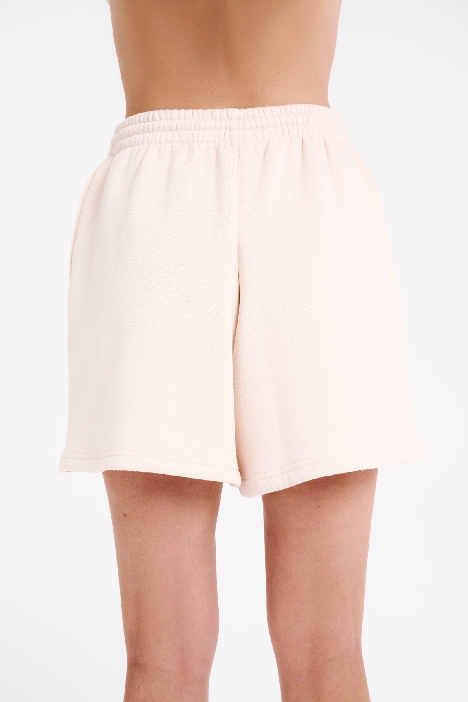 Our signature Carter fleece crafted from washed fleece with an ultra soft hand feel. This new silhouette is an oversized short finishing mid-thigh and worn high on the waist. Features include inseam pockets, an elasticated waistband with cotton cording drawstring and branded cord ends. This short also features subtle nl. embroidery on the wearer's right side.