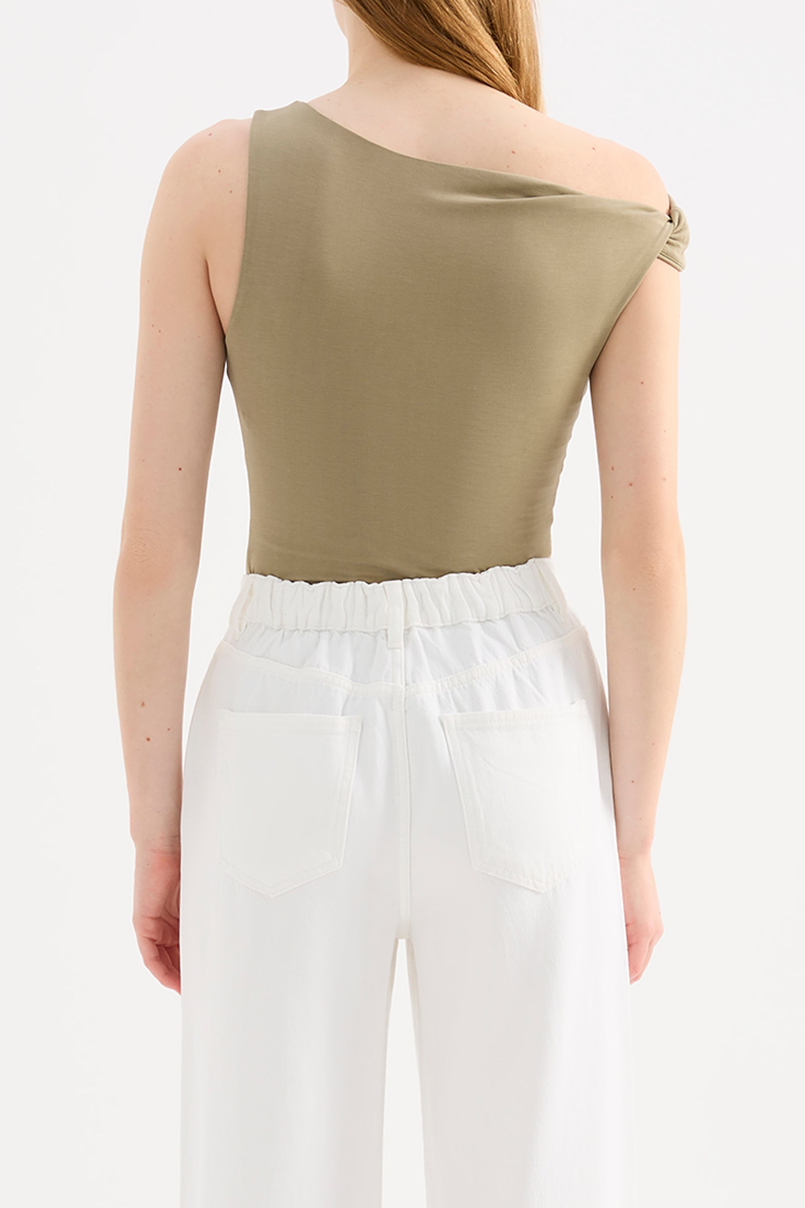 - Asymmetric neckline