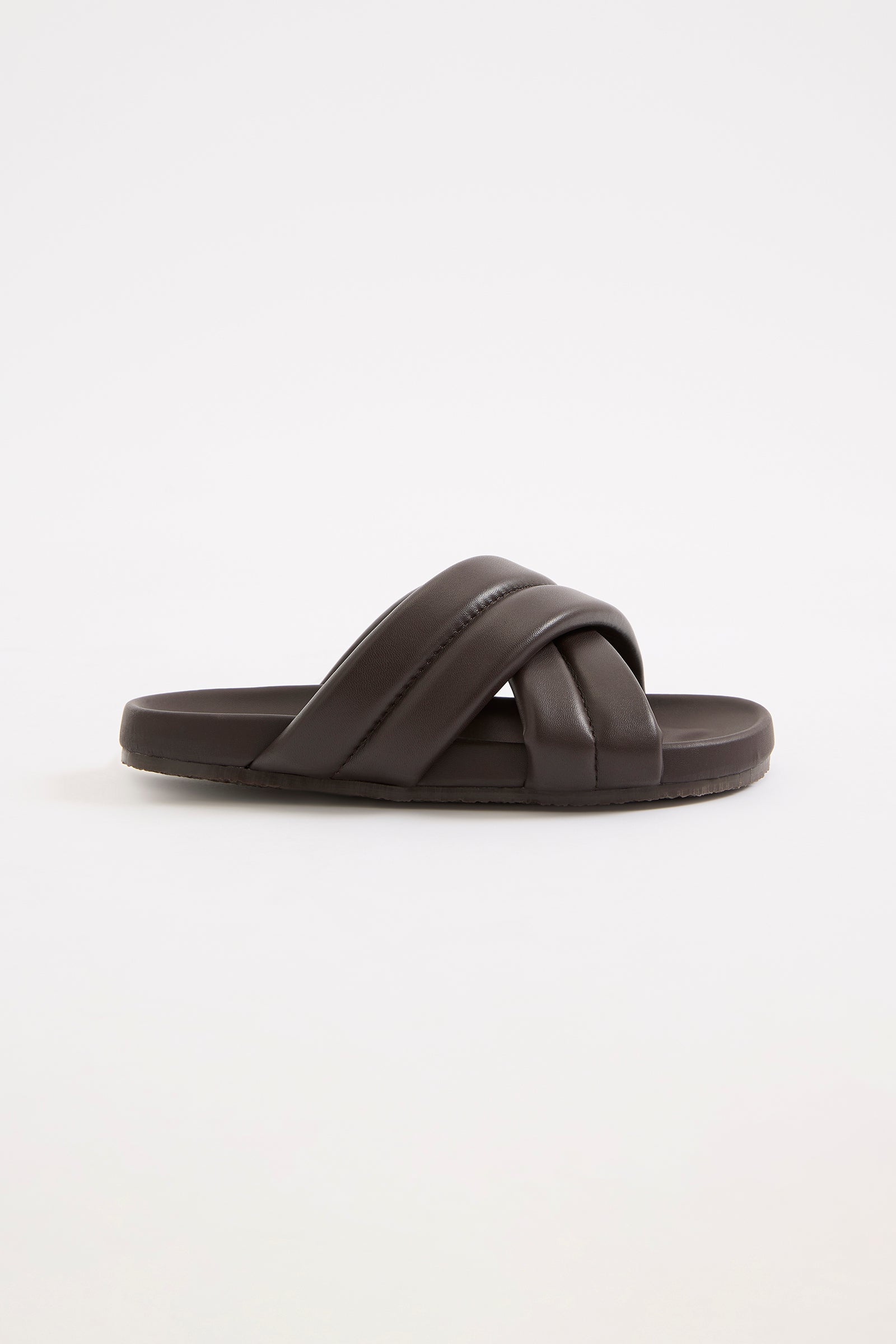 The Crossover Leather Slide features cushioned cross-over straps with quilted detailing and a moulded footbed. The sole is made with soft arched shaping for extra support & comfort. Made from 100% premium sheep leather upper grounded on a solid rubber base with a gum sole.