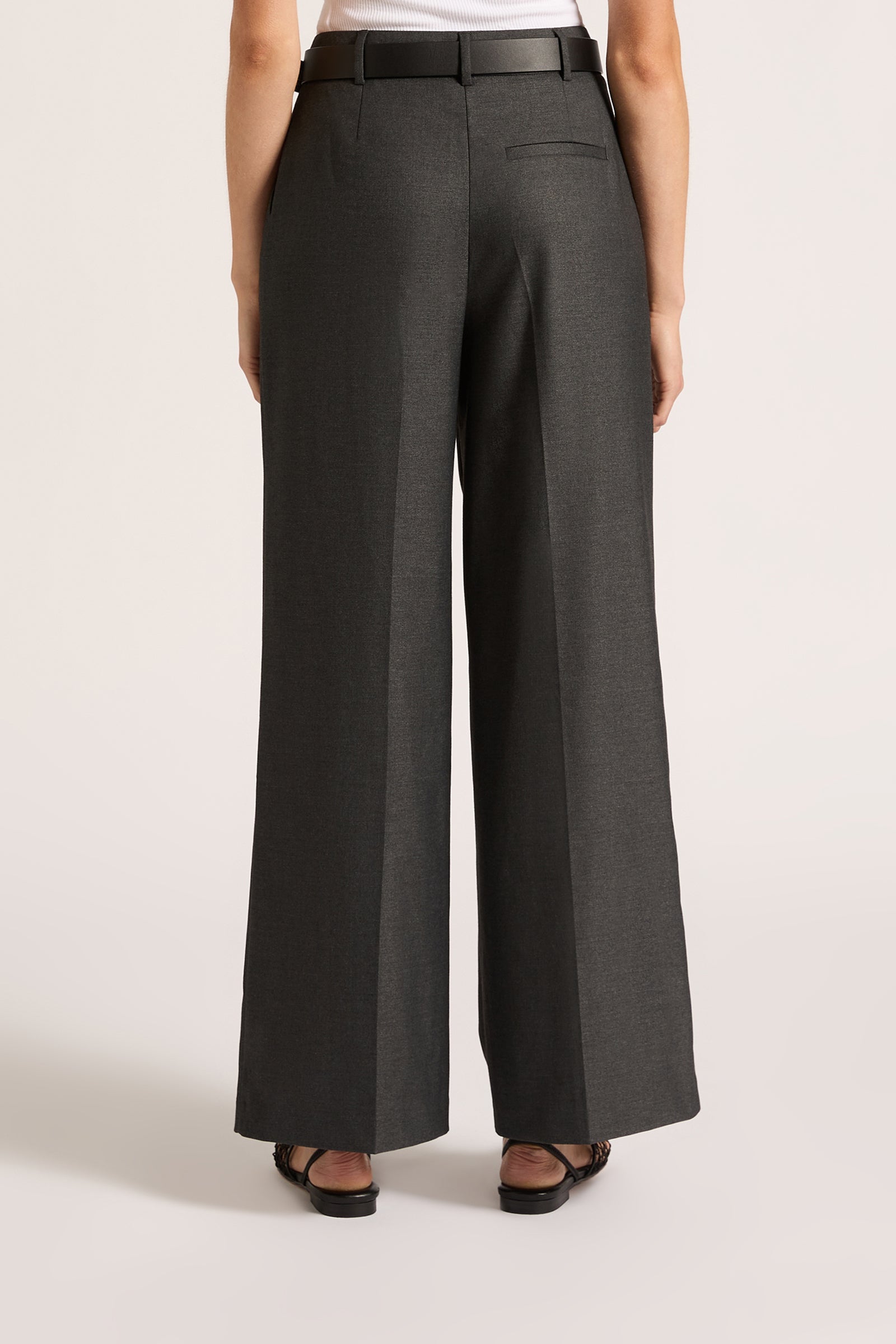 The Dakota Tailored Pant is made from a classic suiting fabrication which has a smooth, structured hand feel. The silhouette is tailored with a high rise and wide leg. Features include front pleats at waist, concealed trouser hook closure, front zipper, coin flap and internal Nude Lucy branded wasitband.