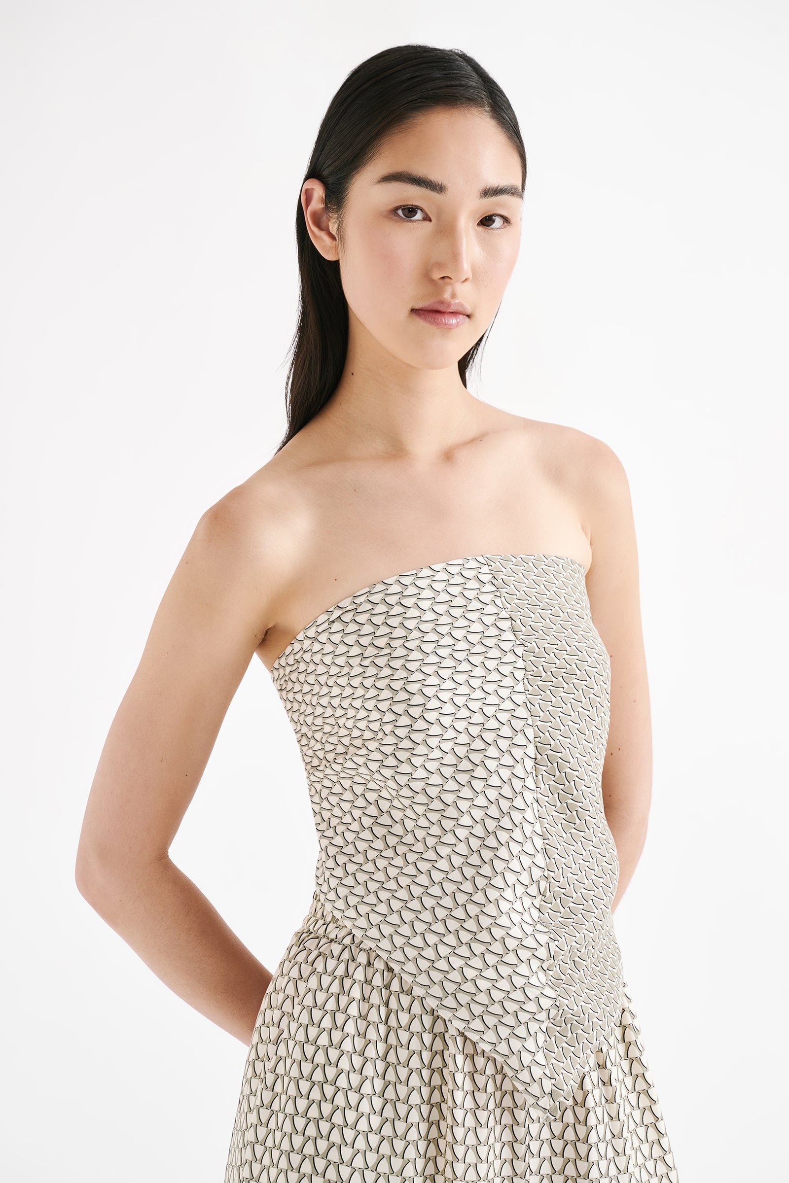 The Delphine Scarf is made in our signature cupro fabrication signature cupro fabrication in our exclusive Delphine print. The scarf is a smooth single layer piece with a neat double turned hem. Designed with versatility, this scarf can be worn as either a top, head scarf, or bag accessory.