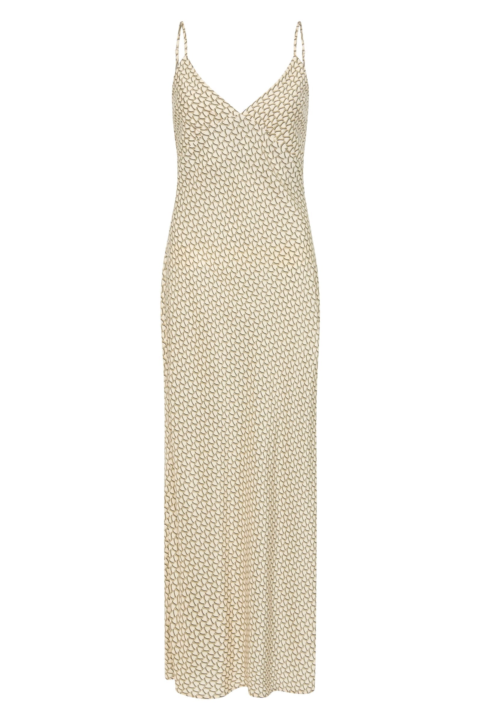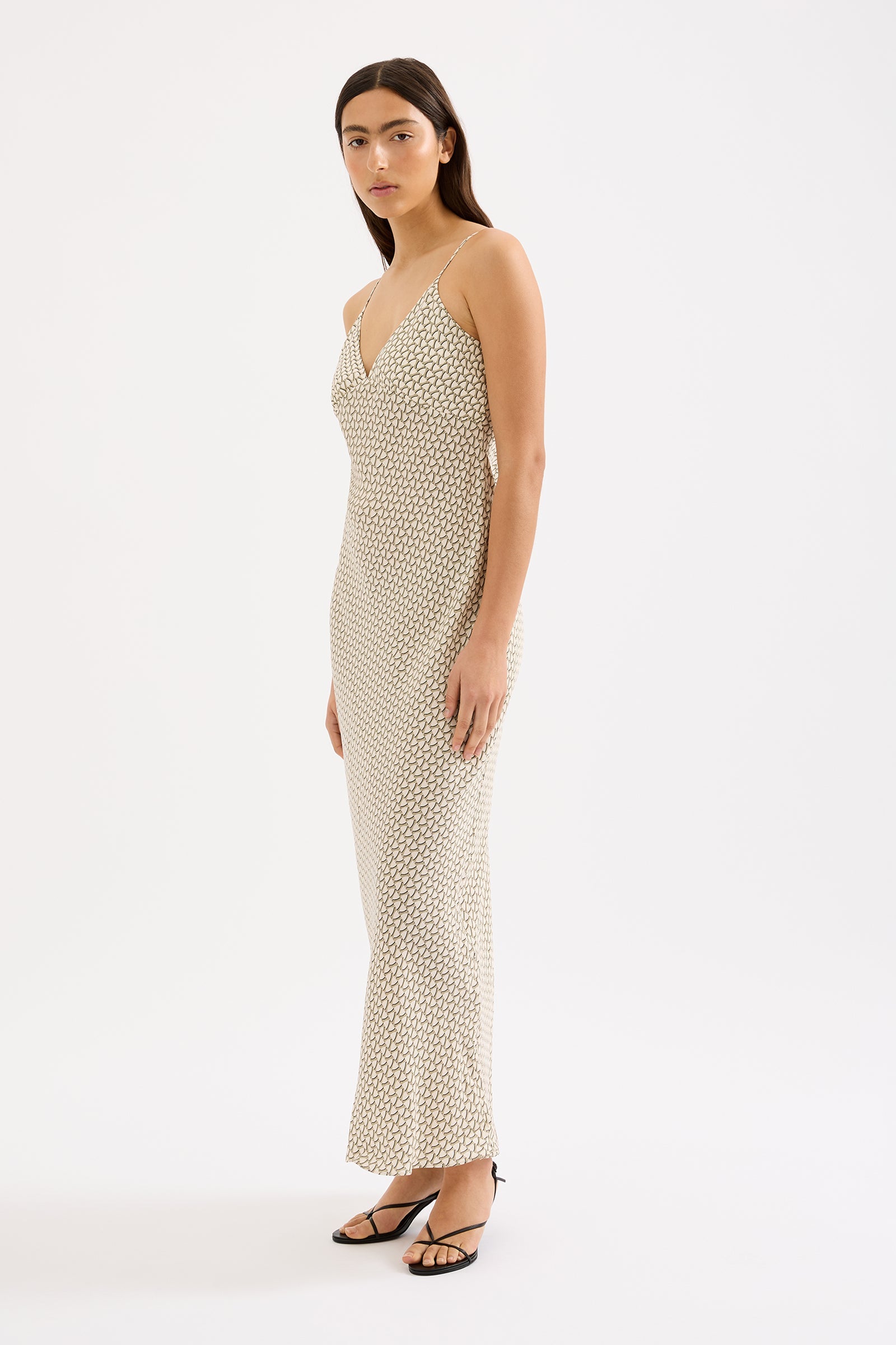 The Delphine Slip Maxi Dress is made in our signature cupro fabrication in our exclusive Delphine print. Cut on the bias, this silhouette drapes over the body softly and finishes ankle length. Features include a v neckline with a gathered under bust seam and adjustable thin straps.