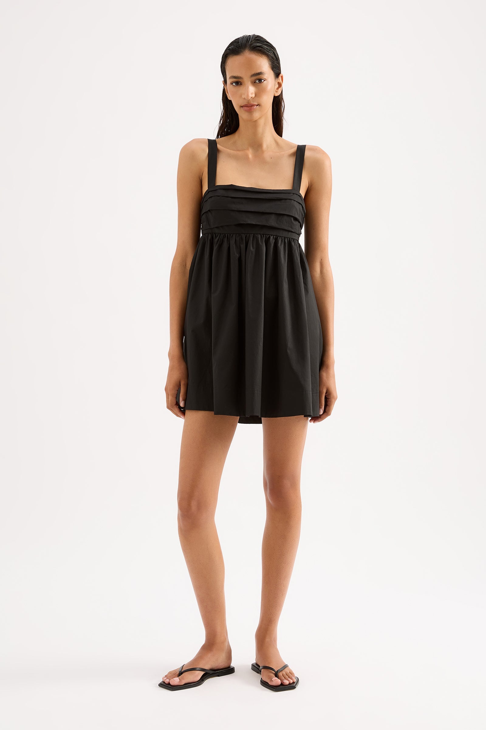 The Drea Mini Dress is made from a cotton poplin which has be washed for a smooth, crisp hand feel. The babydoll silhouette is feminine and relaxed with a square neckline and soft billowing skirt finishing mini in length. Features include tuck detail at bust, invisible zipper and adjustable straps. This dress is fully lined.
