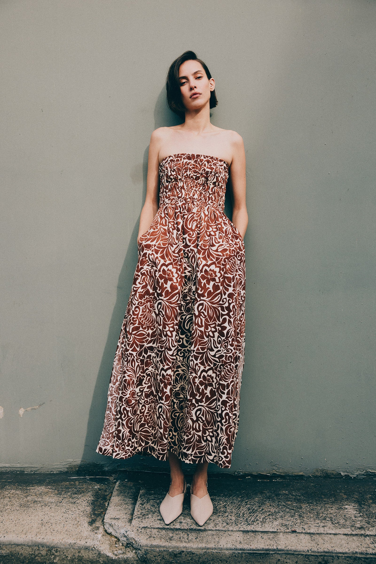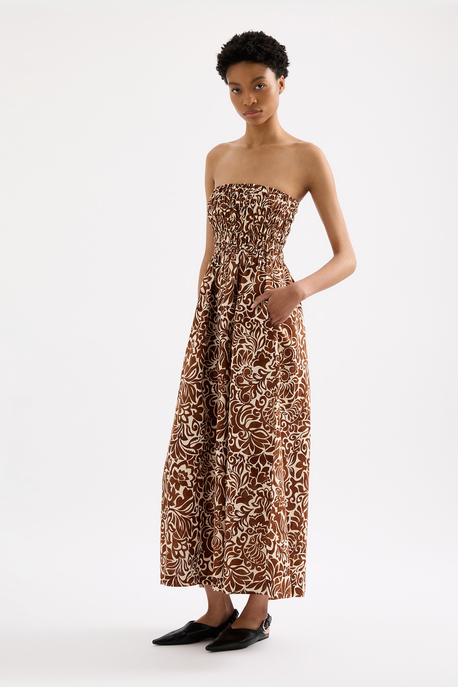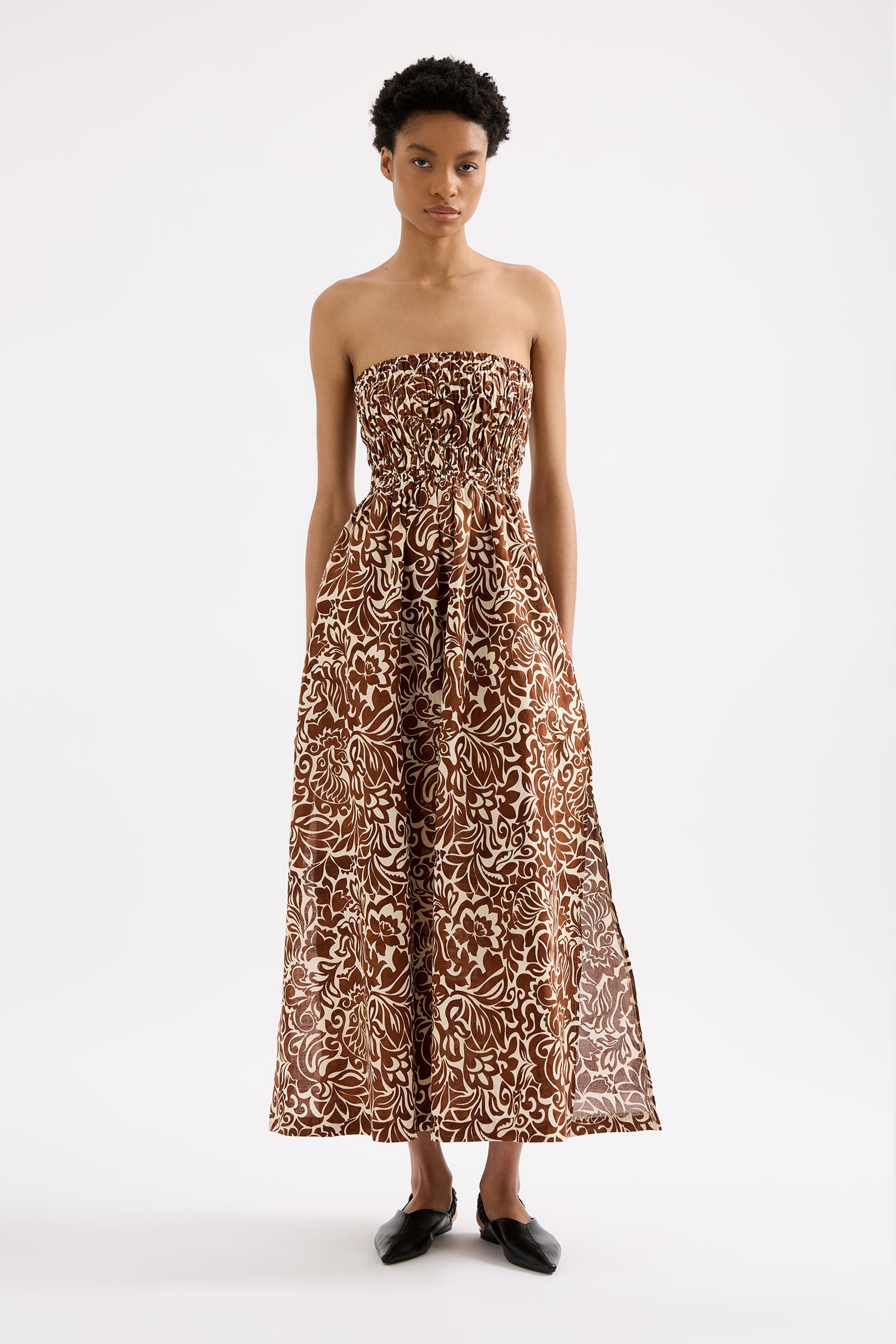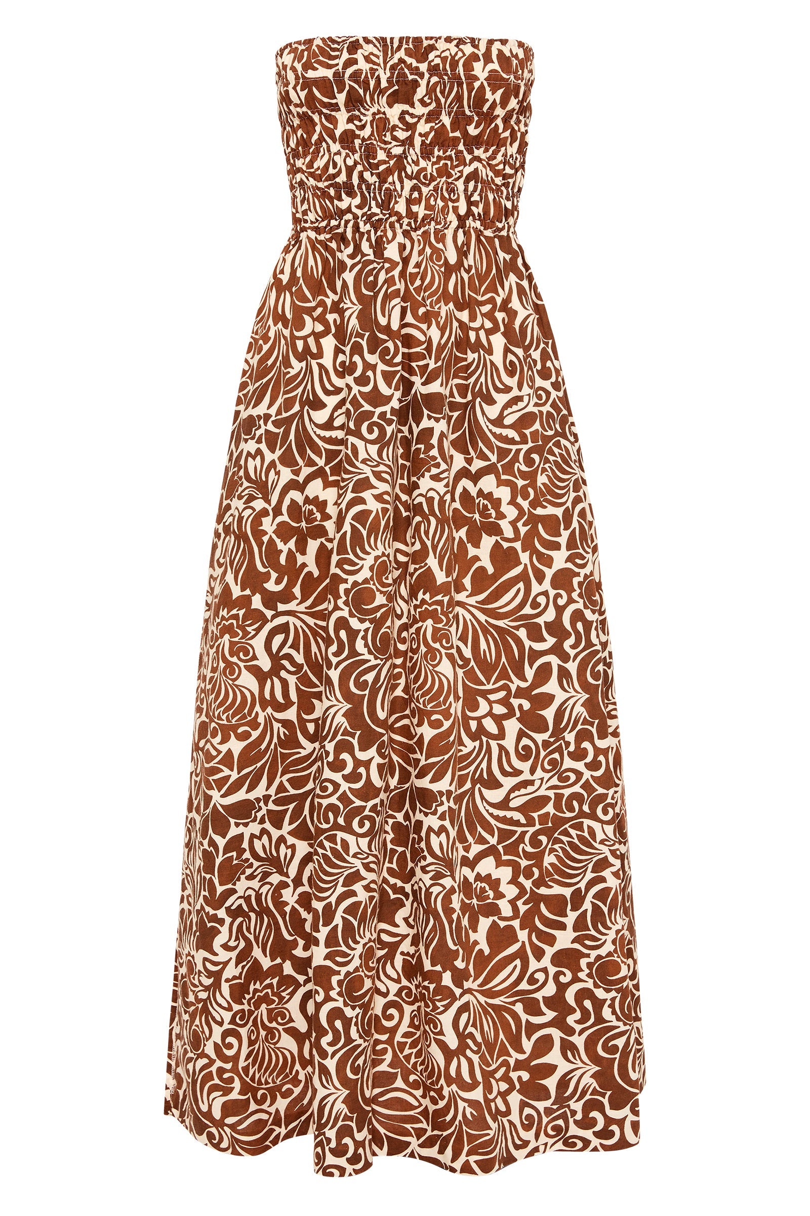 The Florense Maxi Dress is made from a linen blend fabrication in our exclusive Florense print. The silhouette is feminine and relaxed with a strapless, shirred elasticated bodice and soft billowing skirt that finishes above the ankle. Features include side seam pocket and side splits at the hem.