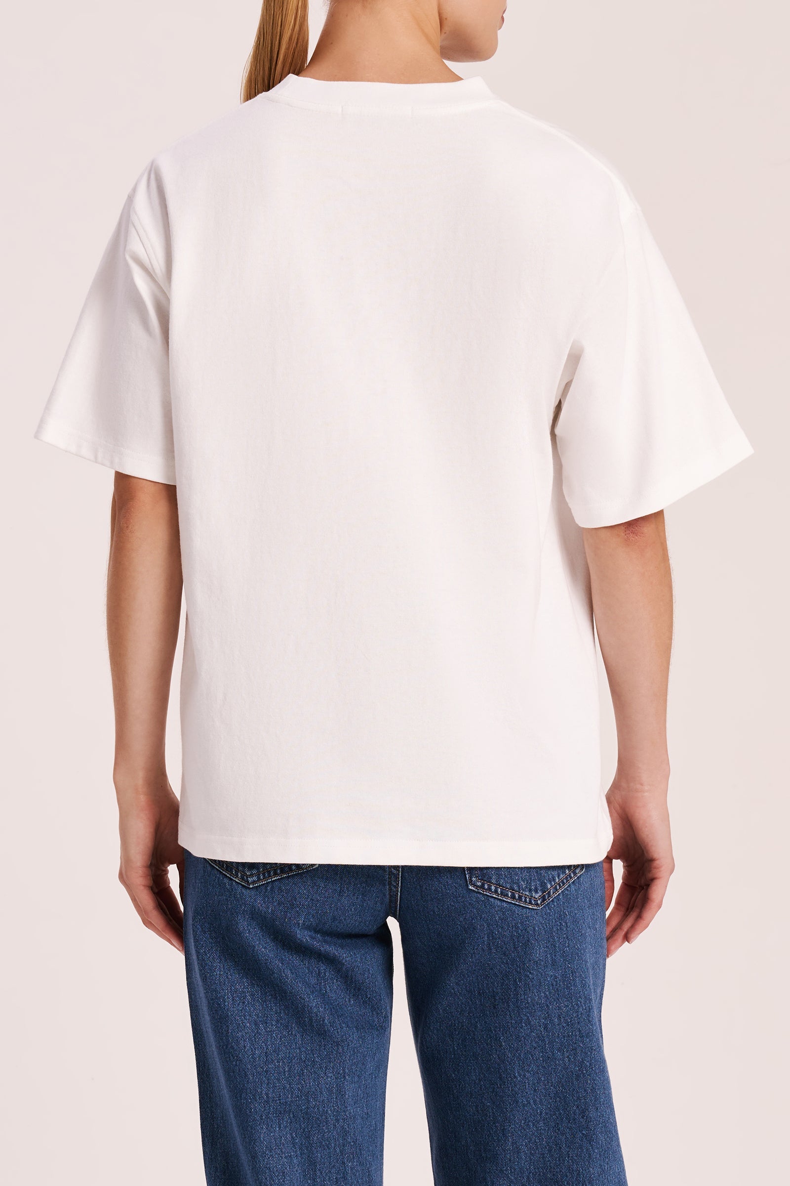 The Haven Emblem Tee is made from a heavyweight organic cotton jersey, which has been washed down for a breathable finish and soft hand feel. The silhouette is a large boxy fit with length finishing just below the hips. Features include a embroidered Nude logo, crew neckline and short sleeves.