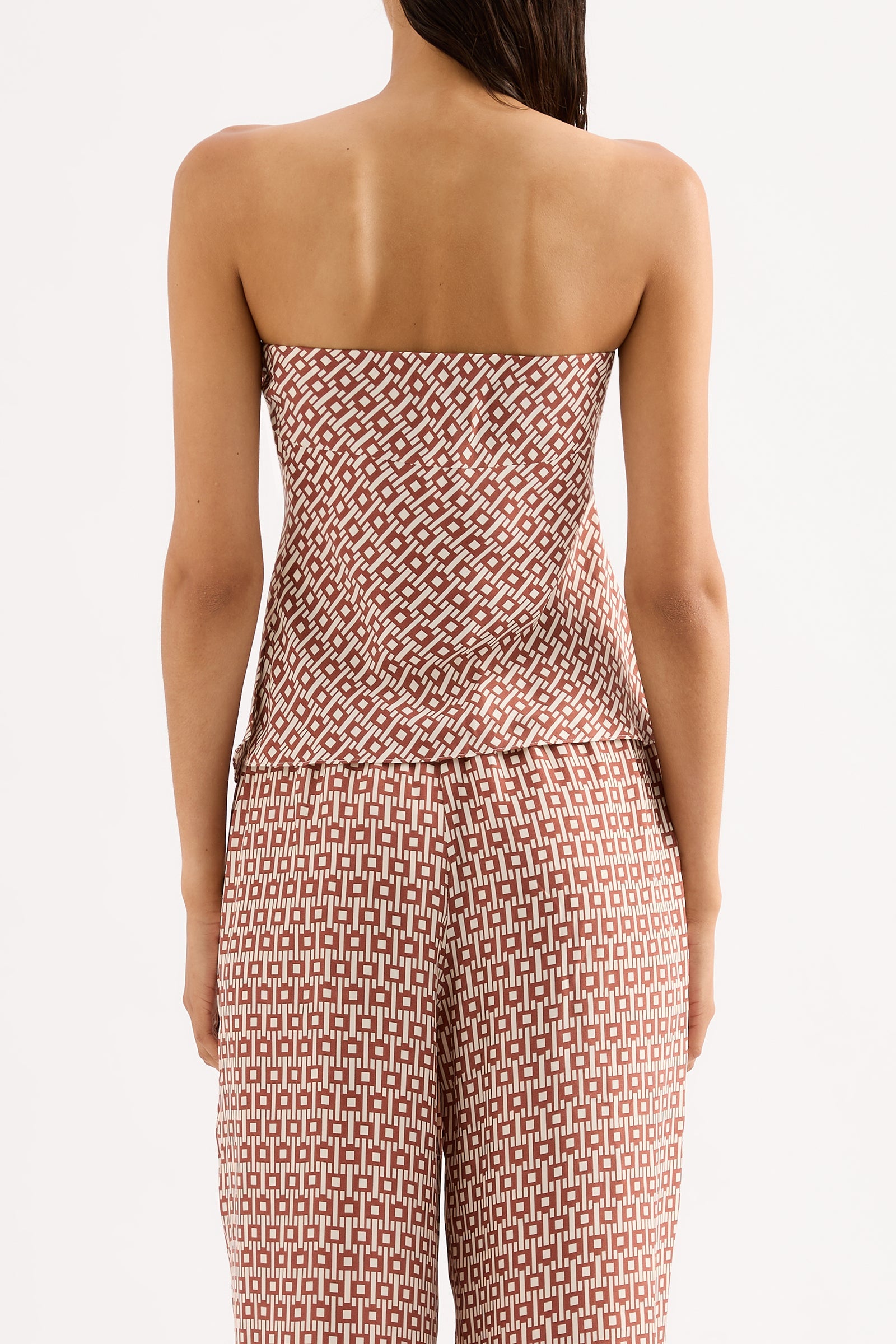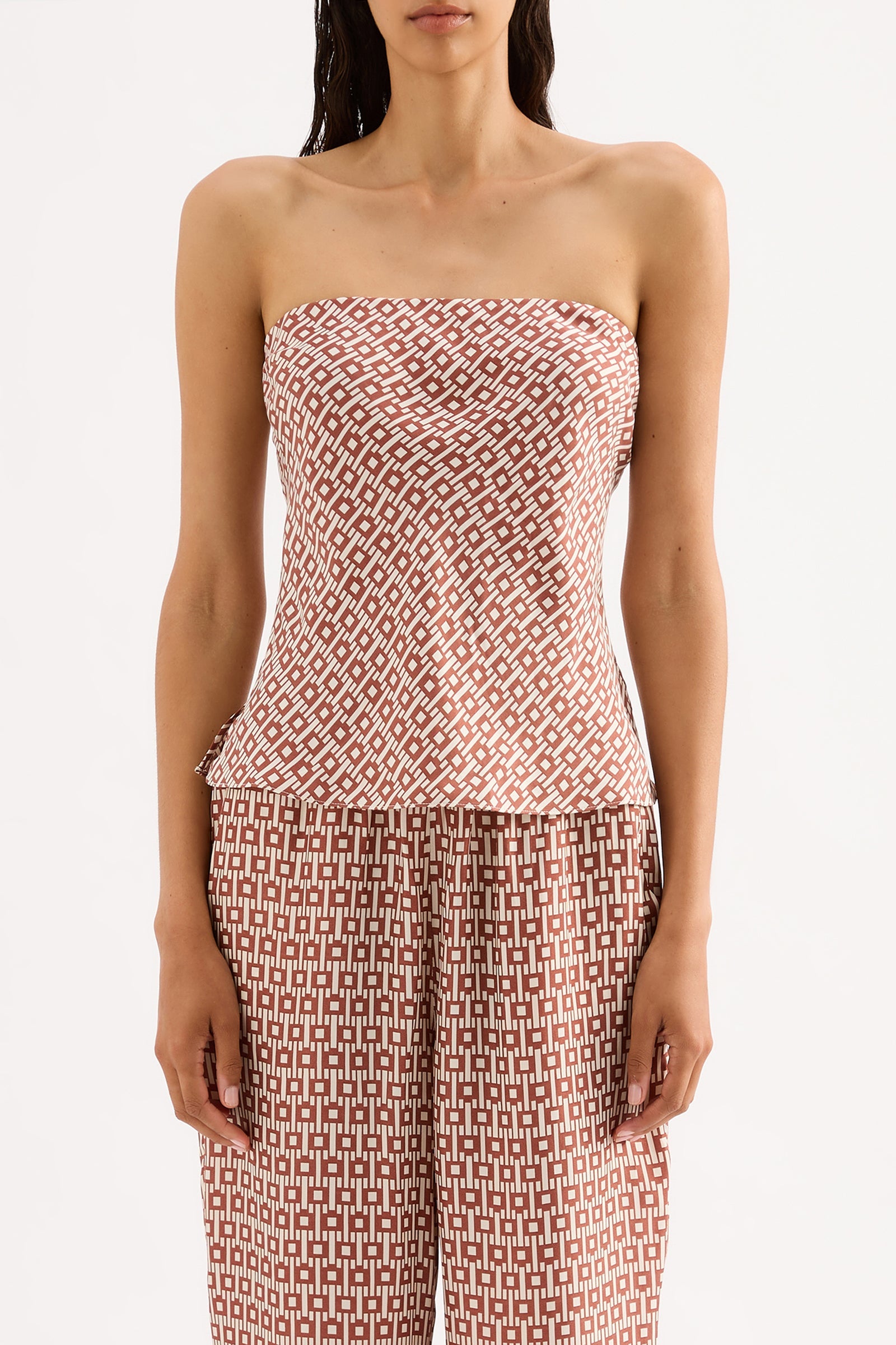 The Jasper Cupro Bodice is made in our signature cupro fabrication in our exclusive Jasper print.. Cut on the bias, this strapless bodice finishes at the hip. Features include encased elastic at top edge and small side seam slits.