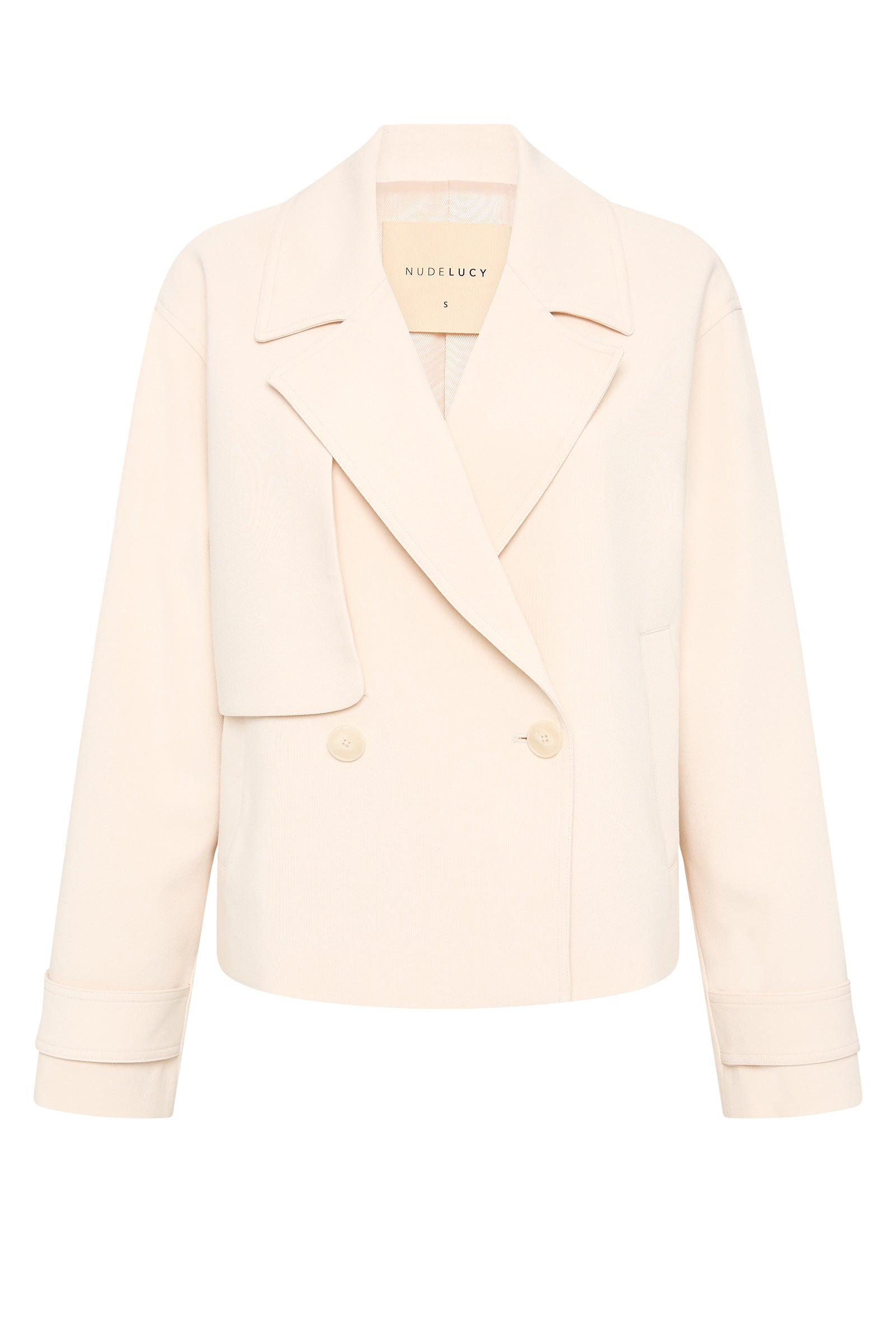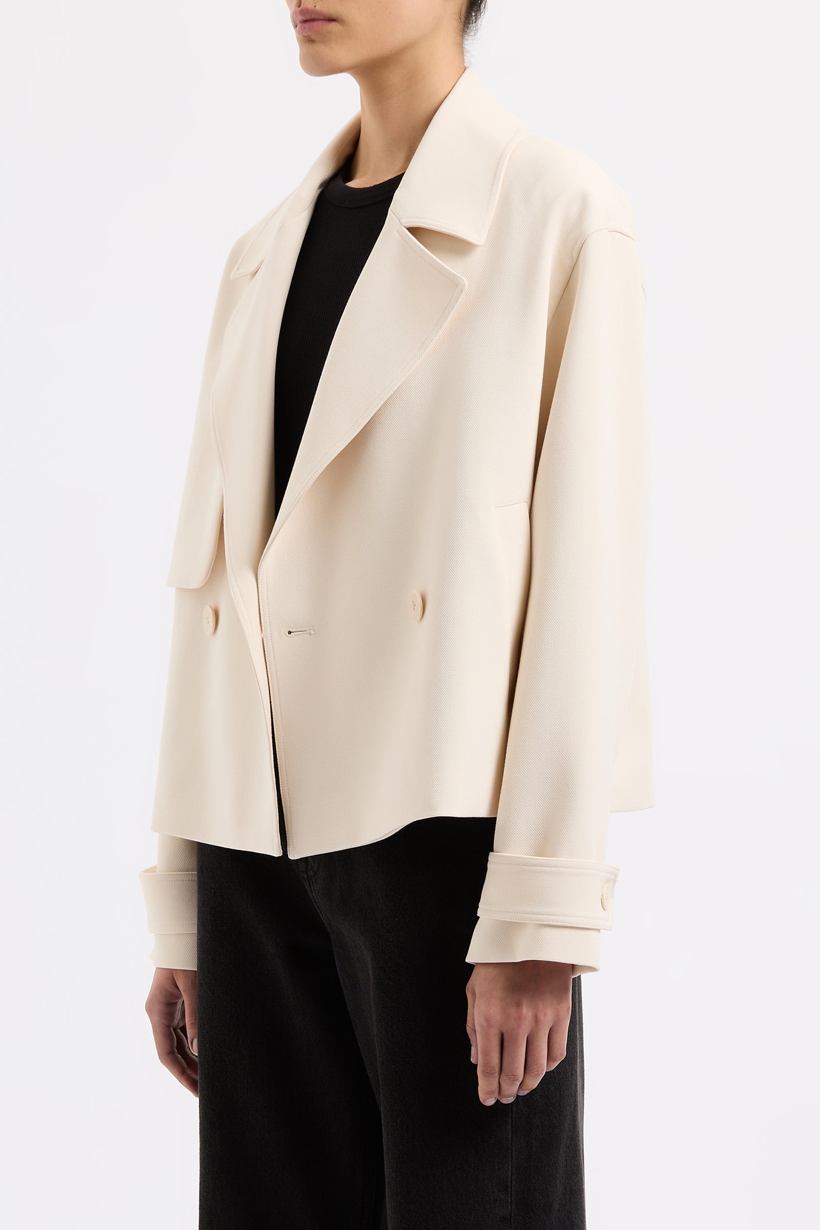 The Karson Crop Trench is made from a midweight fabrication which has a soft, twill hand feel. The silhouette is relaxed with wide full length sleeves & body length finishing at the hips. Features include traditional trench coat detailing, double breasted button opening, storm flap and adjustable cuff detail.