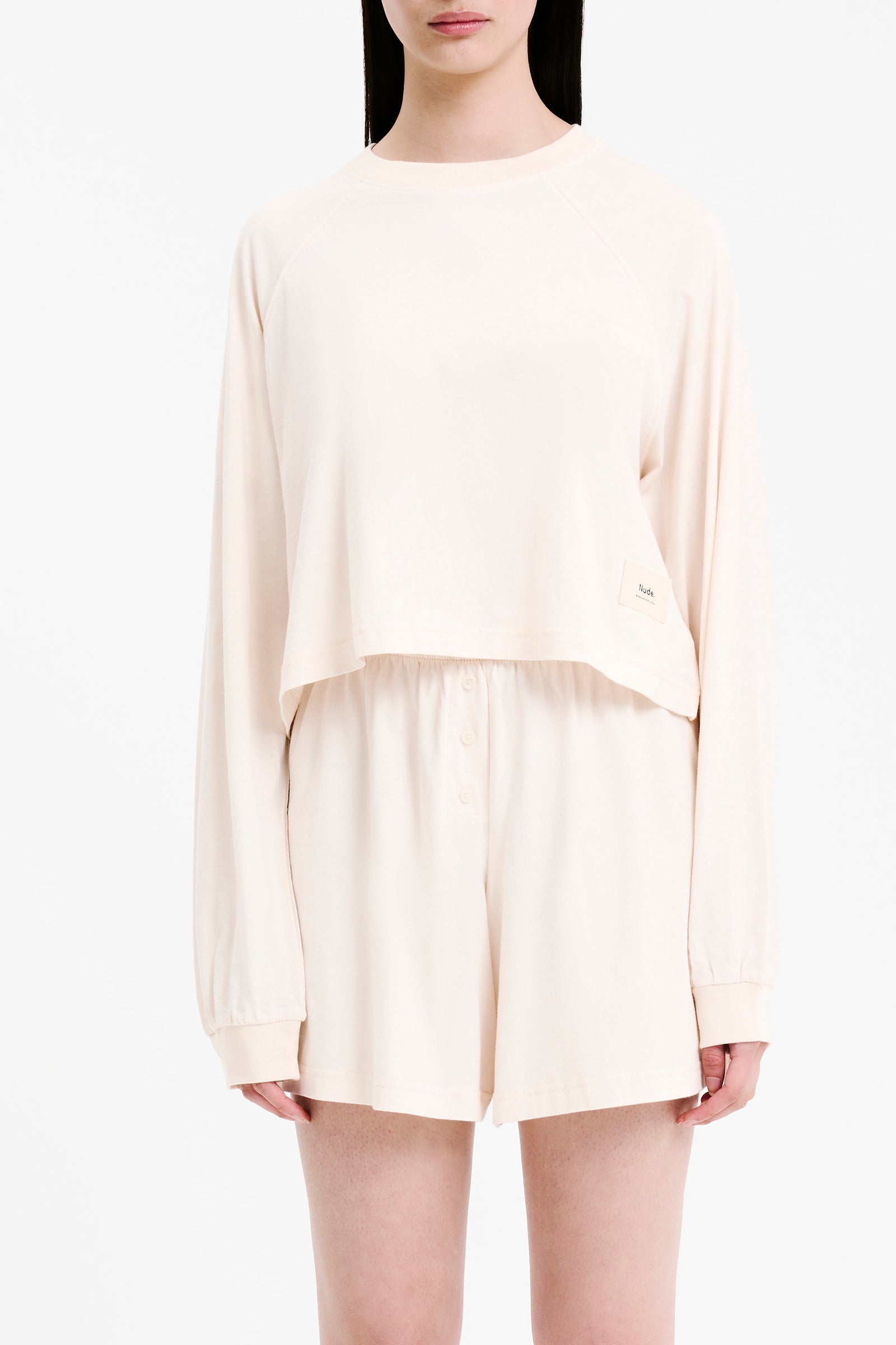 The Lounge LS Tee is a boxy fit made in a breathable organic cotton. Features include a crew neck, wide long sleeves and length finishing on the hips.