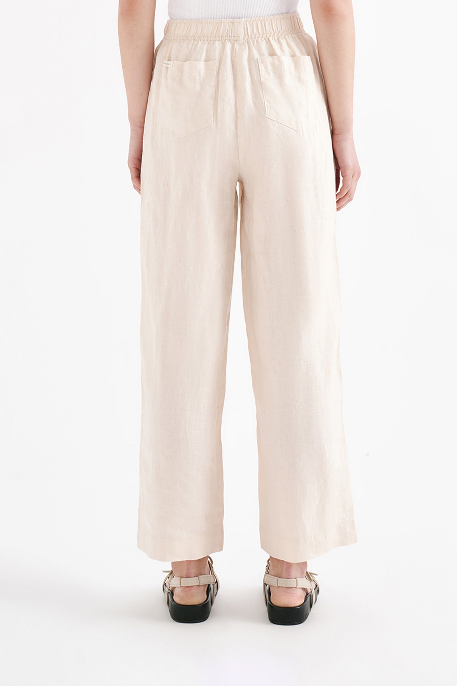 The Lounge Linen Crop Pant is made in a premium 100% organic French linen which has been washed down for a soft and breathable hand feel. The silhouette is a clean, casual fit with a wide leg opening finishing at ankle length. Features include an elasticated waistband with a mock button front, side seam pockets and back patch pockets with Nude Lucy branded label.  Pair with a Nude Lounge top in coordinating colours.
