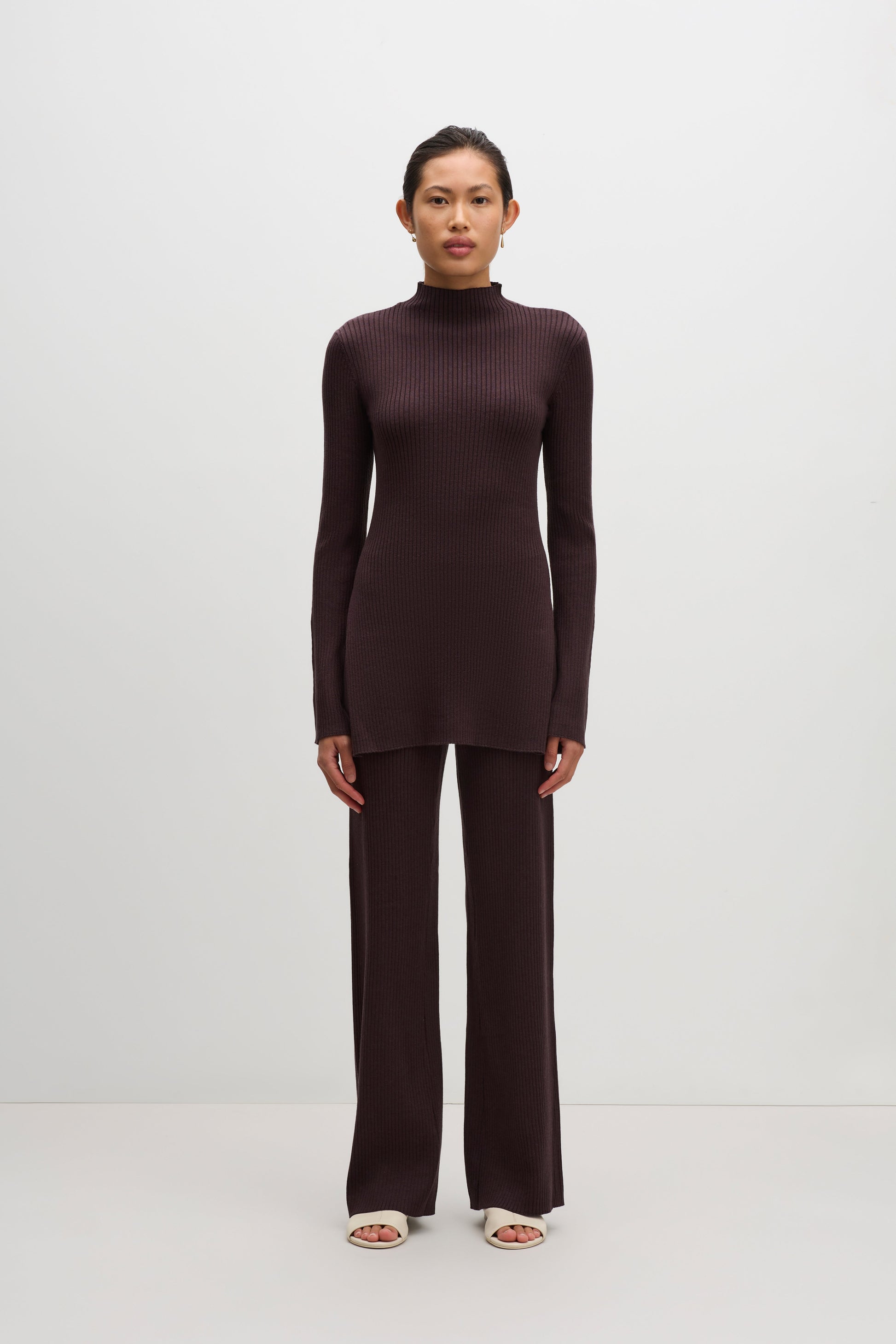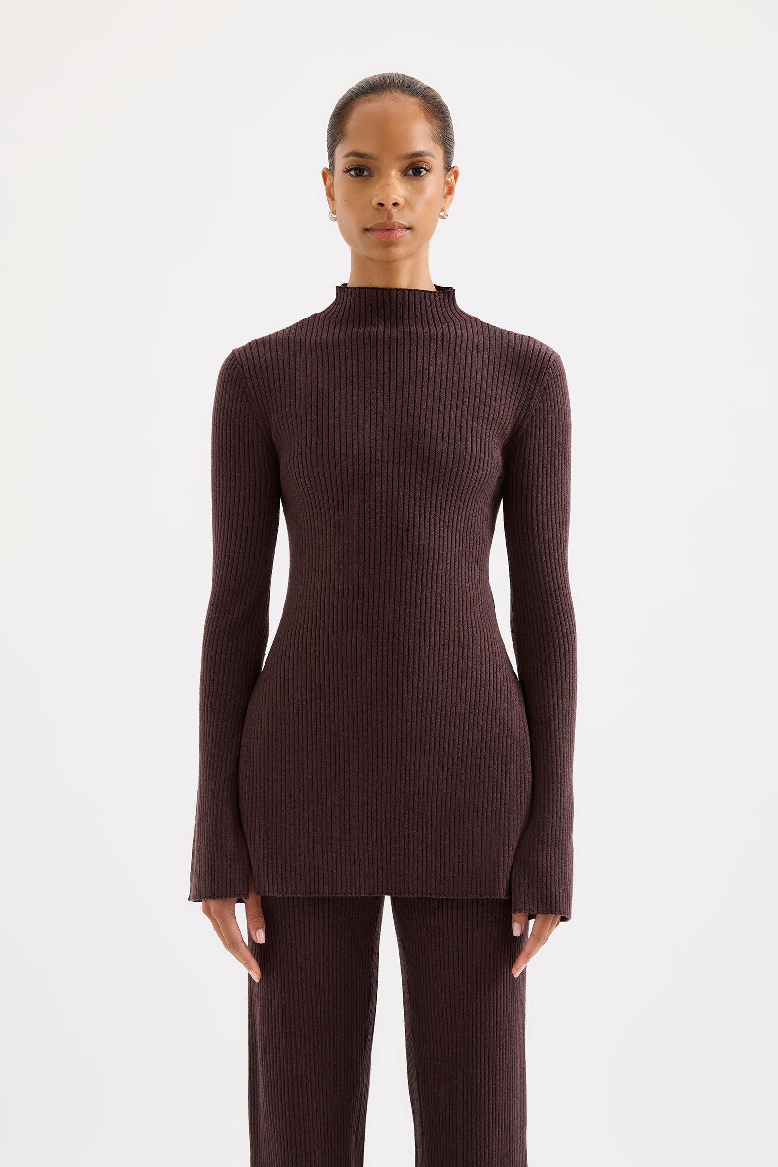 The Malo Knit Tunic is made from a cotton blend yarn that is breathable and has a ribbed finish. The silhouette is fitted to the body with length finishing at hip level. Featured include a mock high neck, long sleeves and slits at side seam.
