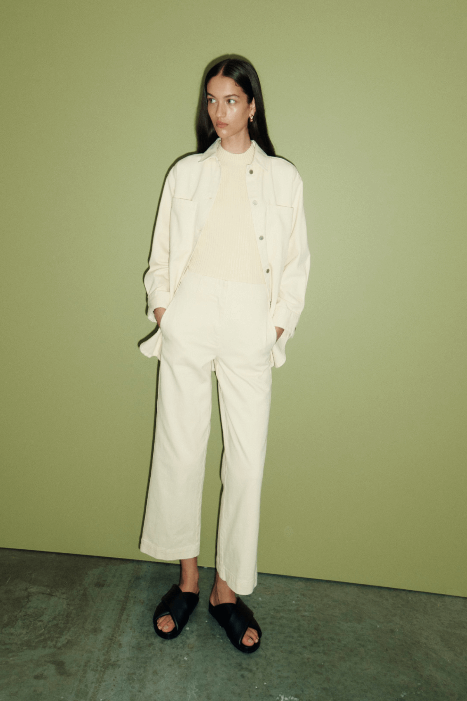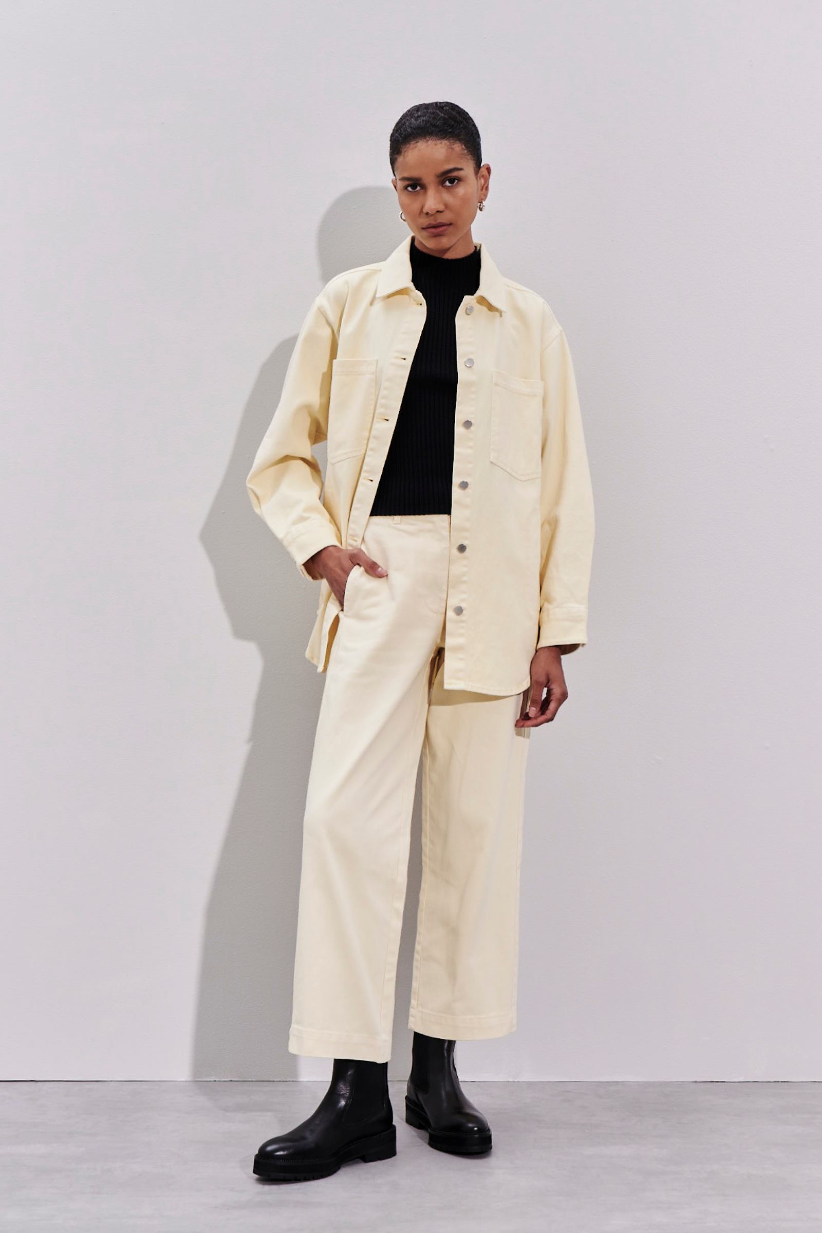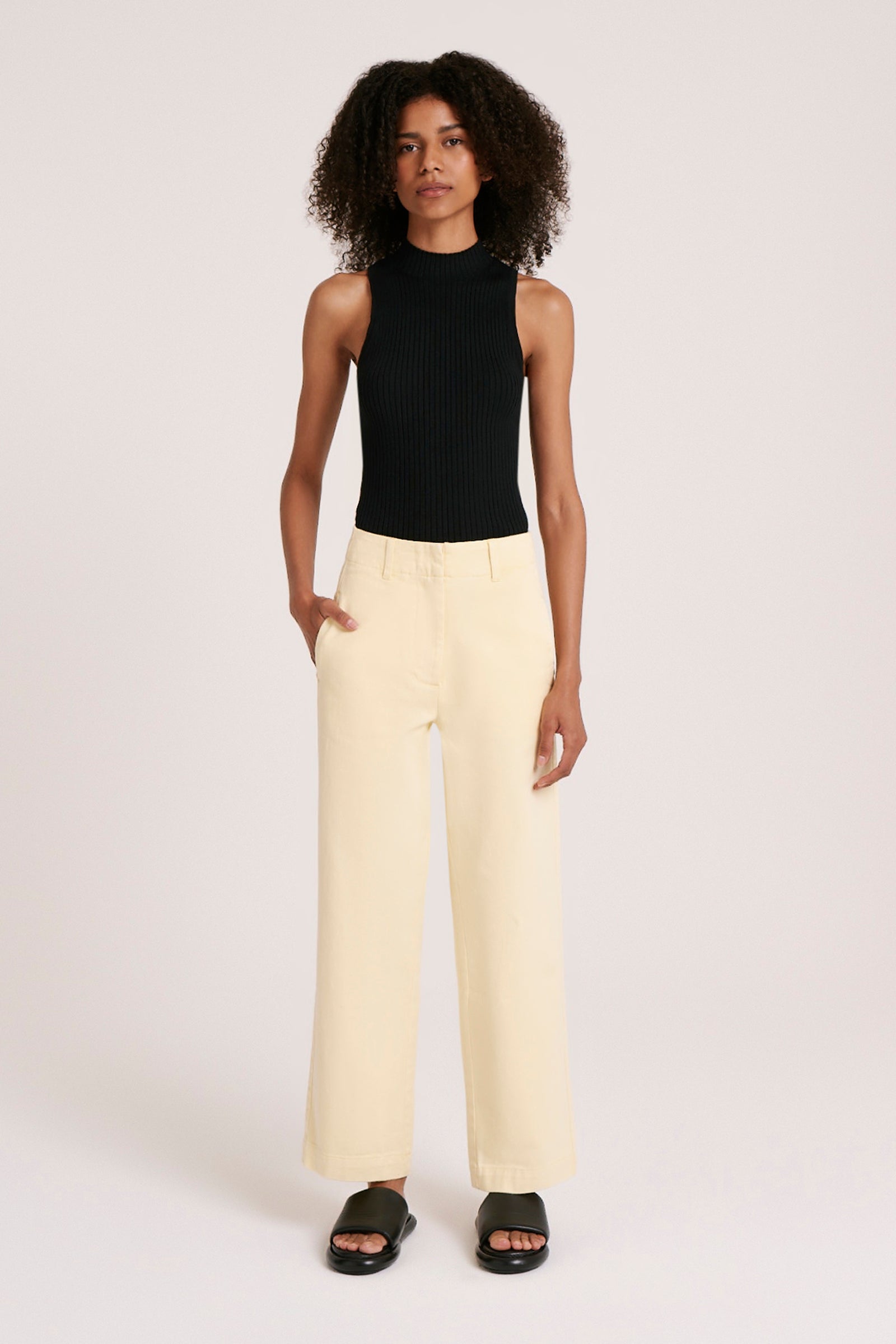 The Neptune Pant is made in 100% Cotton washed denim with a dry handfeel. Silhouette is a mid rise with a straight, tailored leg. Features include functioning fly fronts, classic belt loops and pockets at sides and back.
