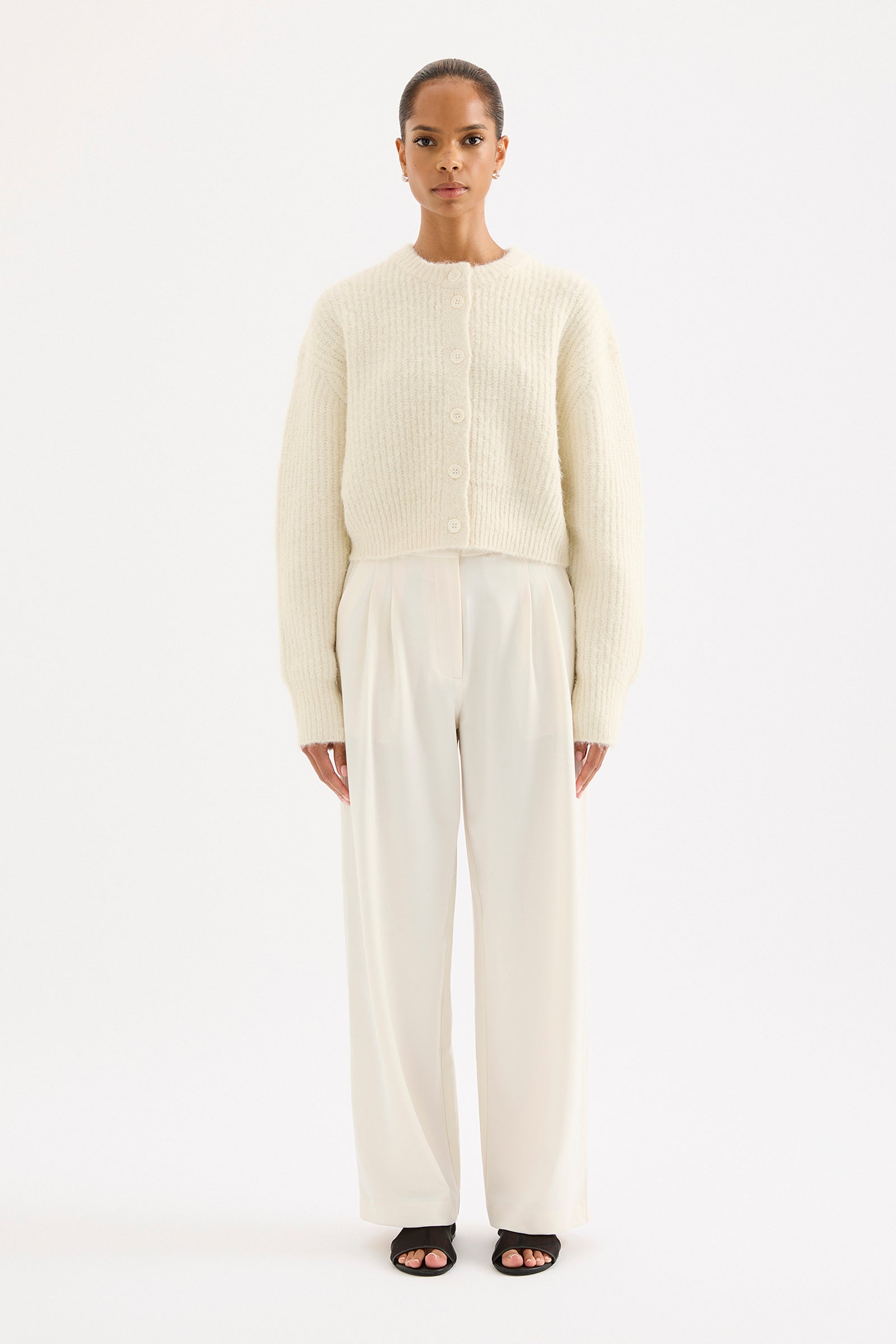 The Nixon Cropped Cardigan is made from a soft midweight yarn with a subtle fluffy texture. The silhouette is cropped, with length finishing above the hip. Features include centre front button opening and soft rib neckline, cuffs and hem.