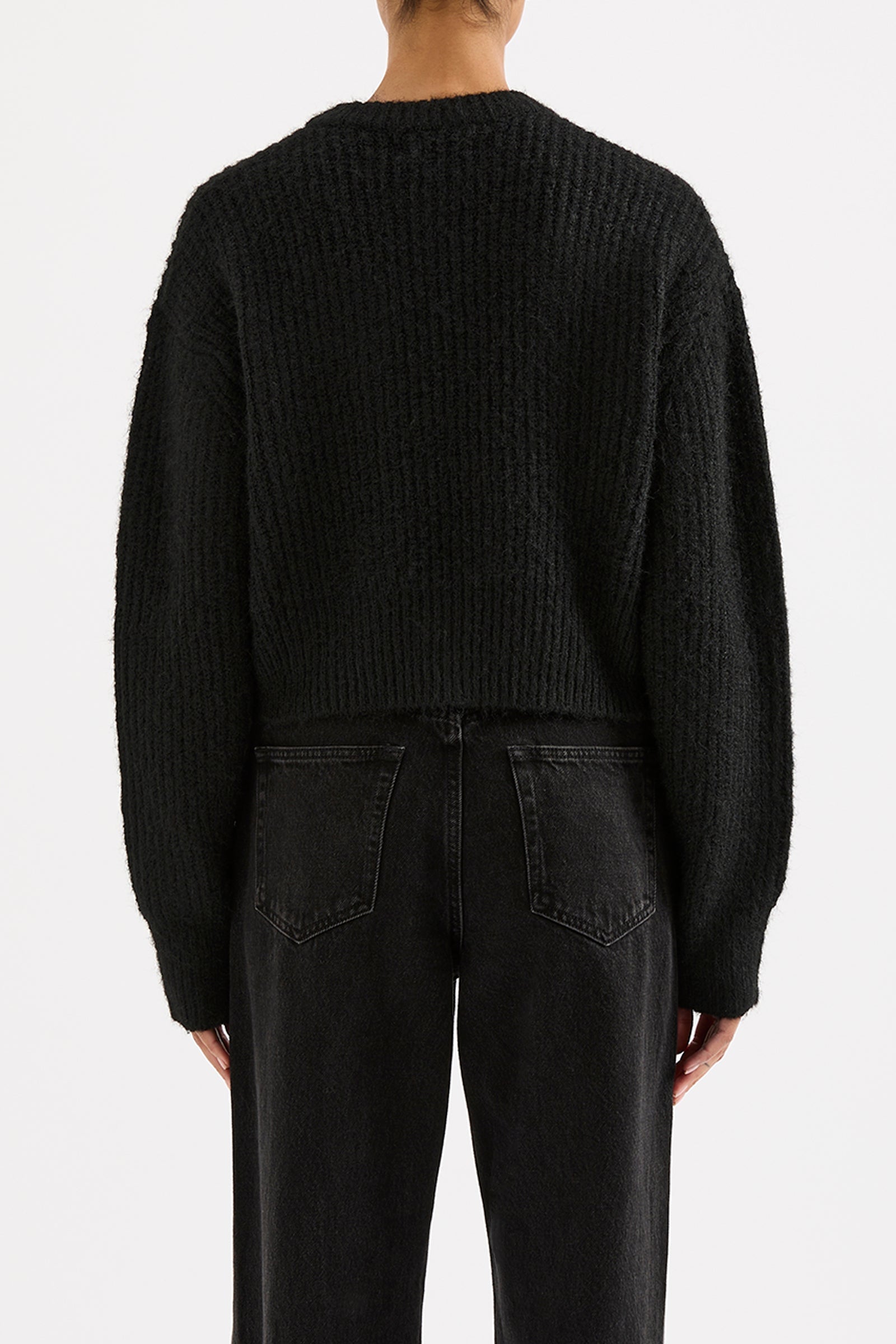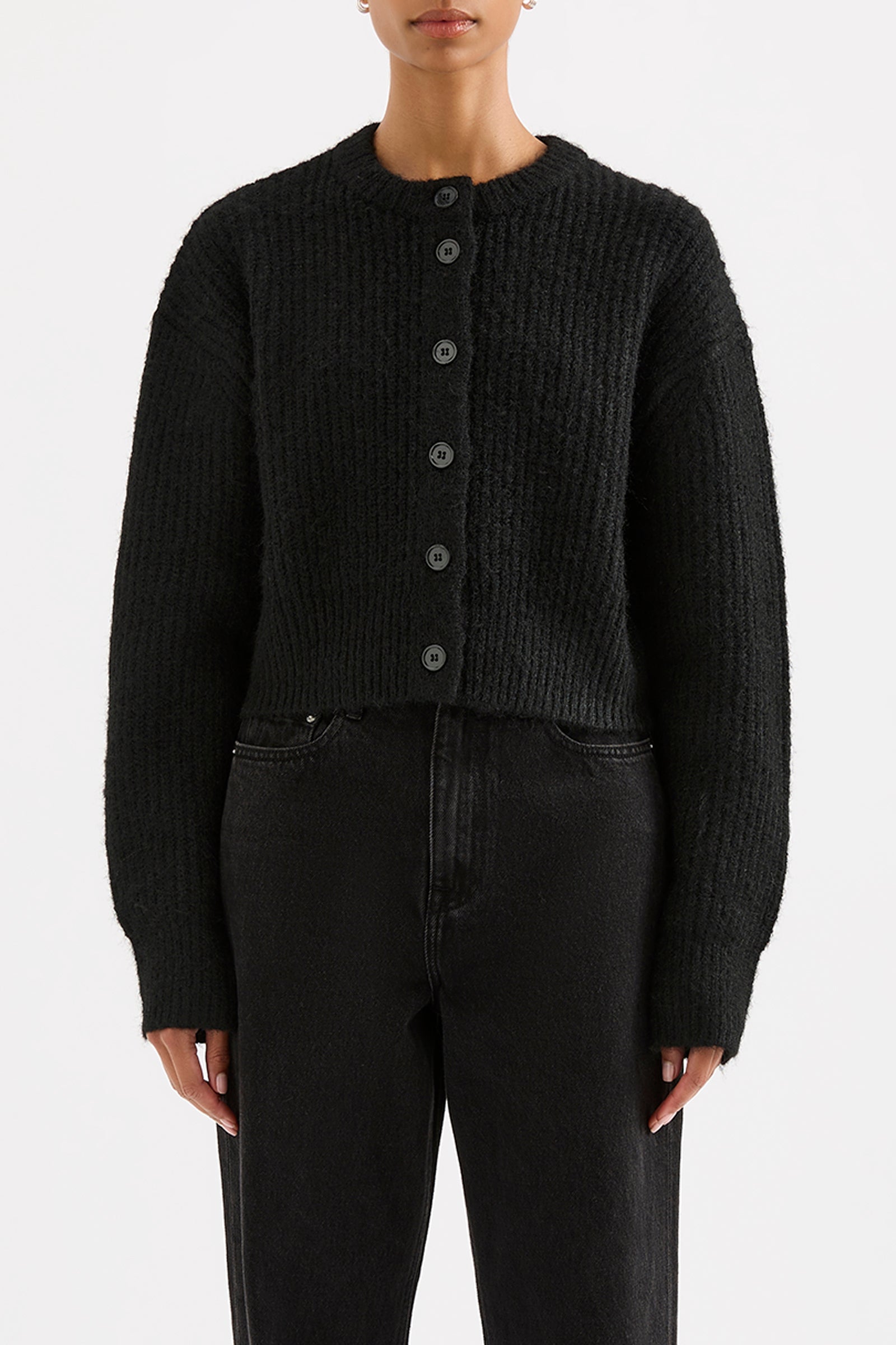 The Nixon Cropped Cardigan is made from a soft midweight yarn with a subtle fluffy texture. The silhouette is cropped, with length finishing above the hip. Features include centre front button opening and soft rib neckline, cuffs and hem.