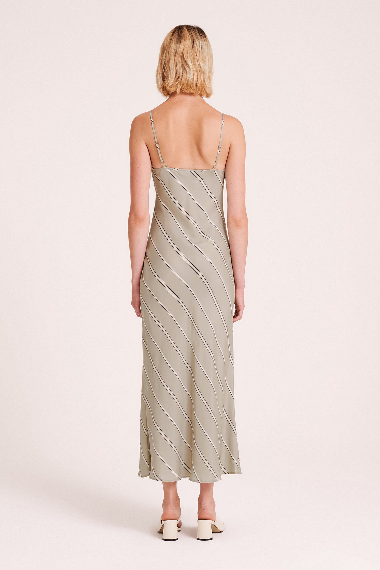 The Noosha Cupro Dress is made in our signature cupro fabrication in our exclusive Ramone print. Cut on the bias, this silhouette drapes over the body softly and finishes above the ankles. Features include a scoop neckline and thin adjustable straps.