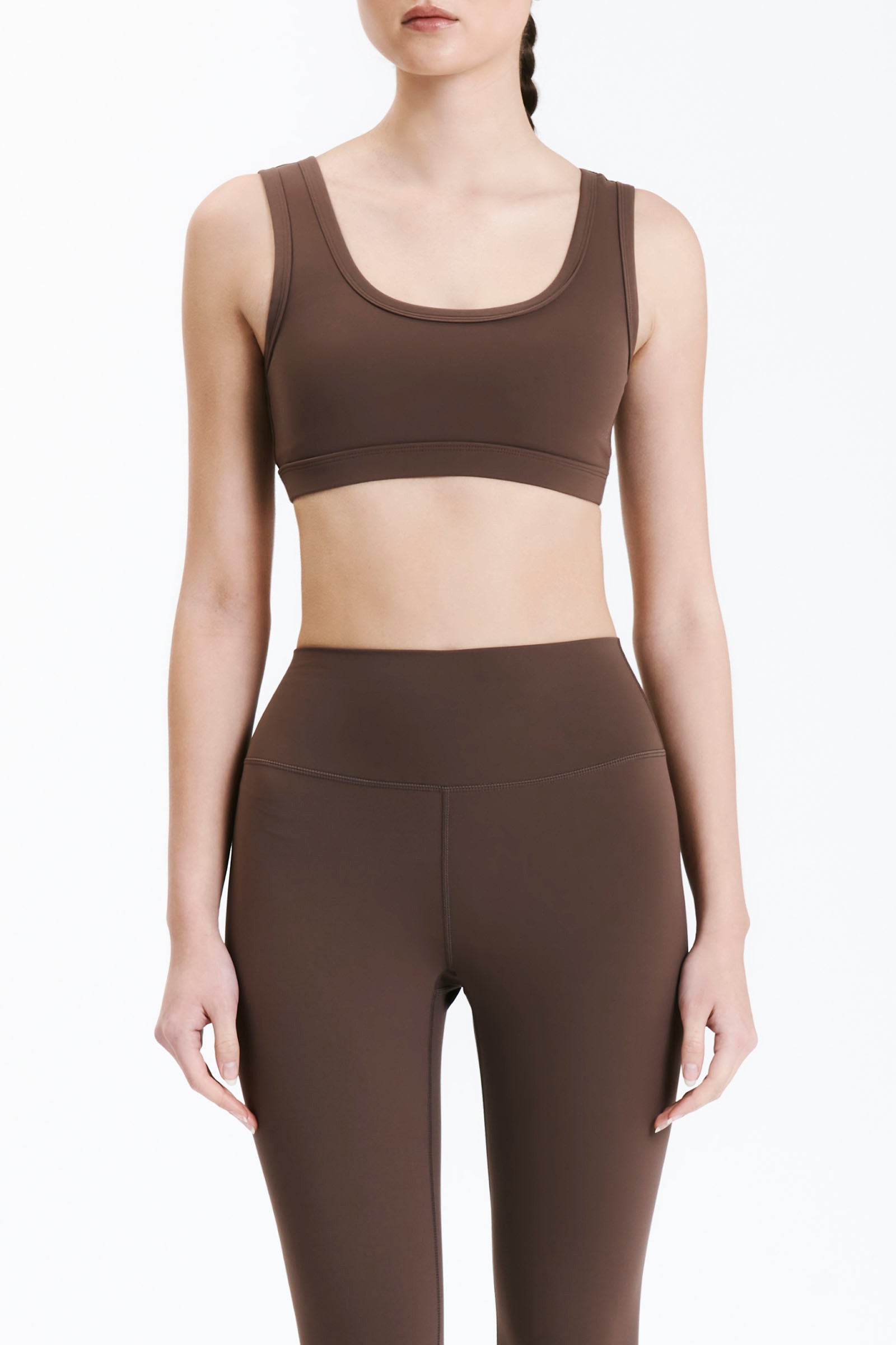 The Nude Active Crop Top is a form-fitting crop cut in a recycled performance fabrication with a matte, velvety finish. Made from Recycled Nylon and 25% Lycra, this quality has 4-way stretch and has been designed to sculpt and smooth whilst providing full coverage and support for low-impact activities. Features include a scoop neckline, removable padded inserts, our signature nl. branded logo, and an elasticated band seam at the underbust for stability and support.