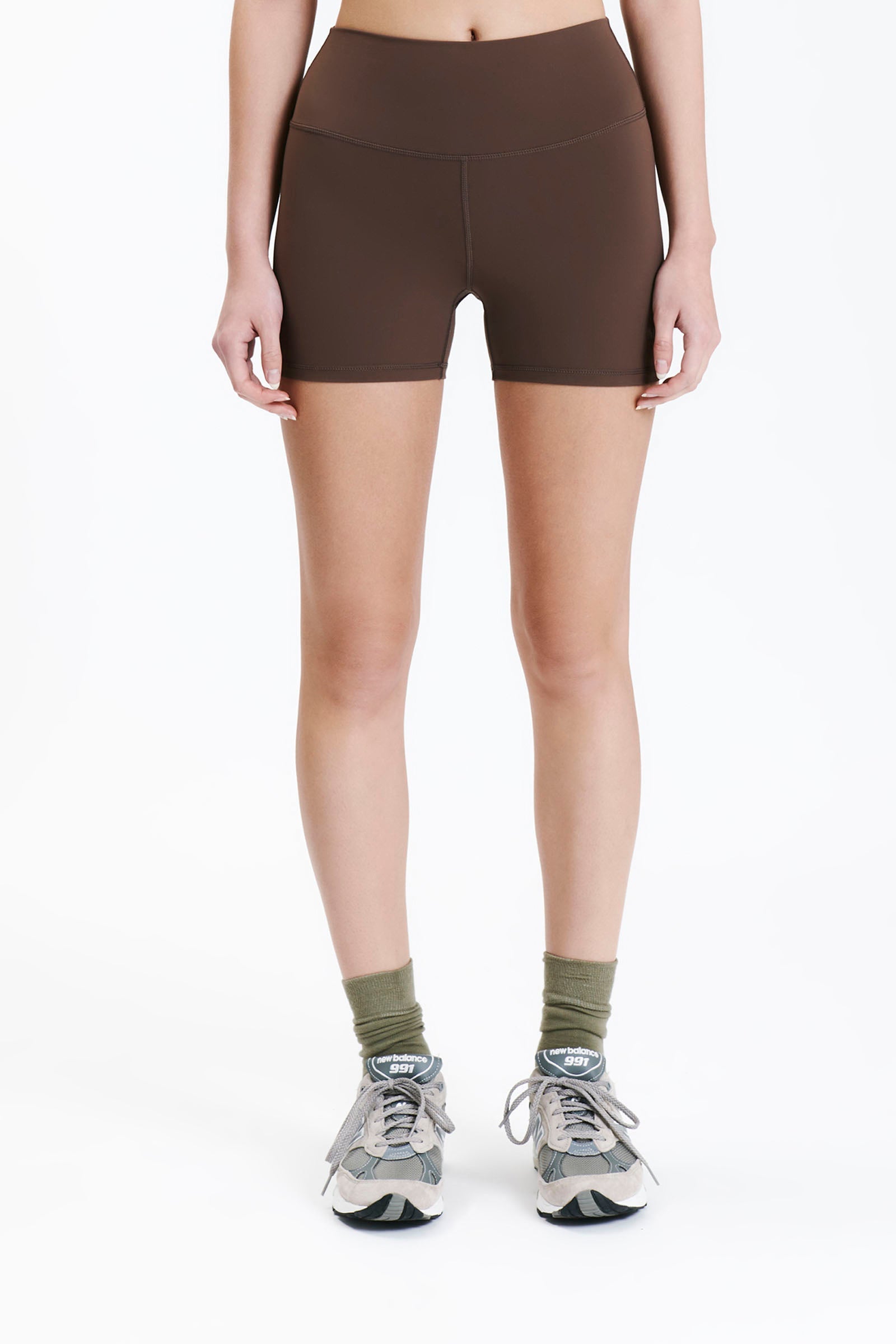The Nude Active Bike Short is a mini length, form fitting short, cut in a Recycled performance fabrication with a matt, velvety finish. Made from Recycled Nylon and 25% Lycra, this quality has 4-way stretch and has been designed to sculpt and smooth whilst providing full coverage and support for low impact activities. Features include a double layer high rise waist for a slimmer fit and feel, our signature nl. branded logo and a hidden waistband pocket at the centre back. Inleg length: 10cm.