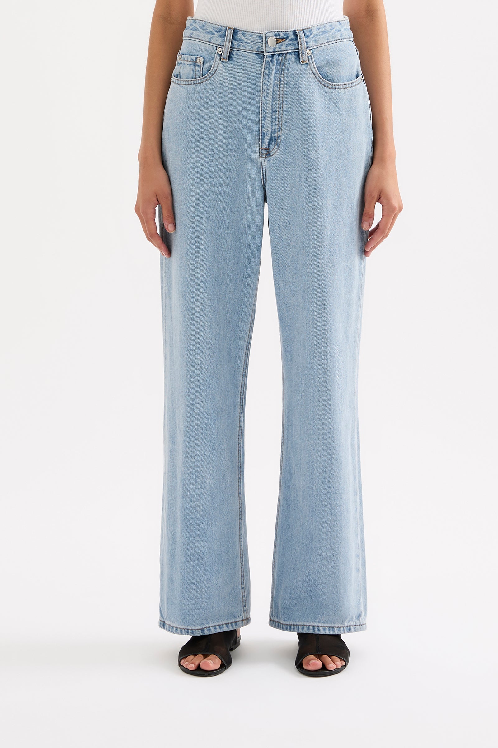 The Organic Relaxed Leg Jean is made from 12 oz 100% organic cotton denim, stone washed to an authentic stone wash blue. The silhouette is high rise and fitted at the waist and hip with the leg relaxed from thigh to ankle. Features include branded shank button, rivets & Jacron Back patch. Fits true to size, size up for a more relaxed fit.