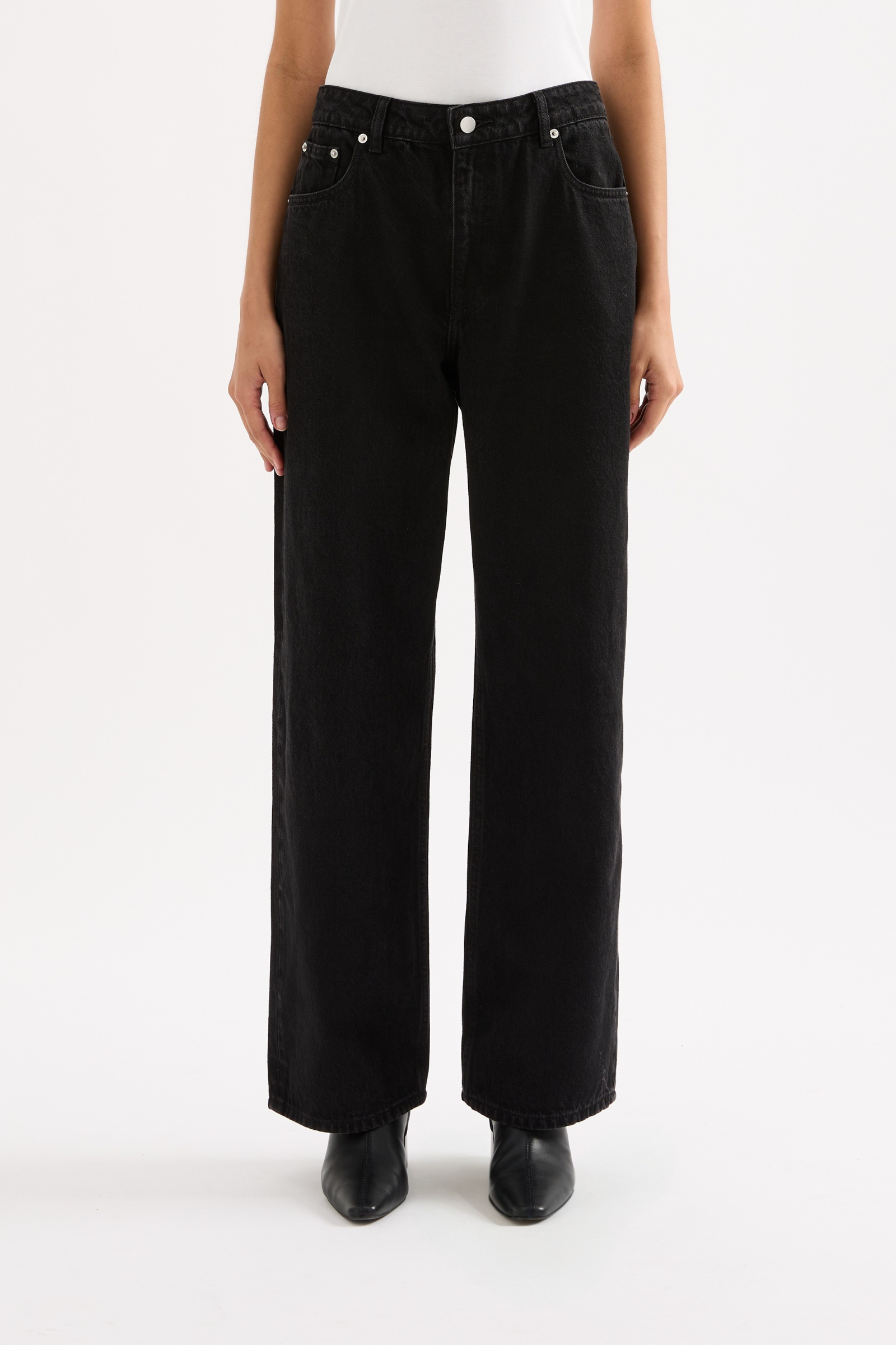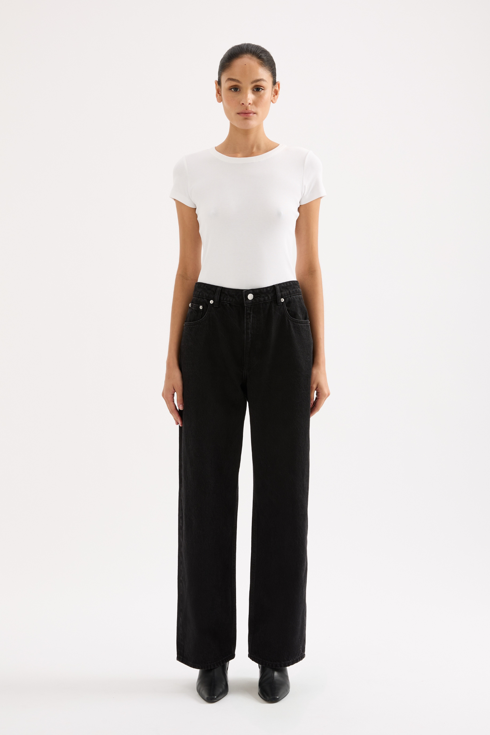 A classic relaxed leg jean, made from 12oz 100% organic cotton denim, stone washed to an authentic stone wash blue. Shape is fitted at waist and hip with leg relaxed from thigh to ankle length. Features include branded shank button, rivets & Jacron Back patch. Fits true to size, size up for a more relaxed fit.