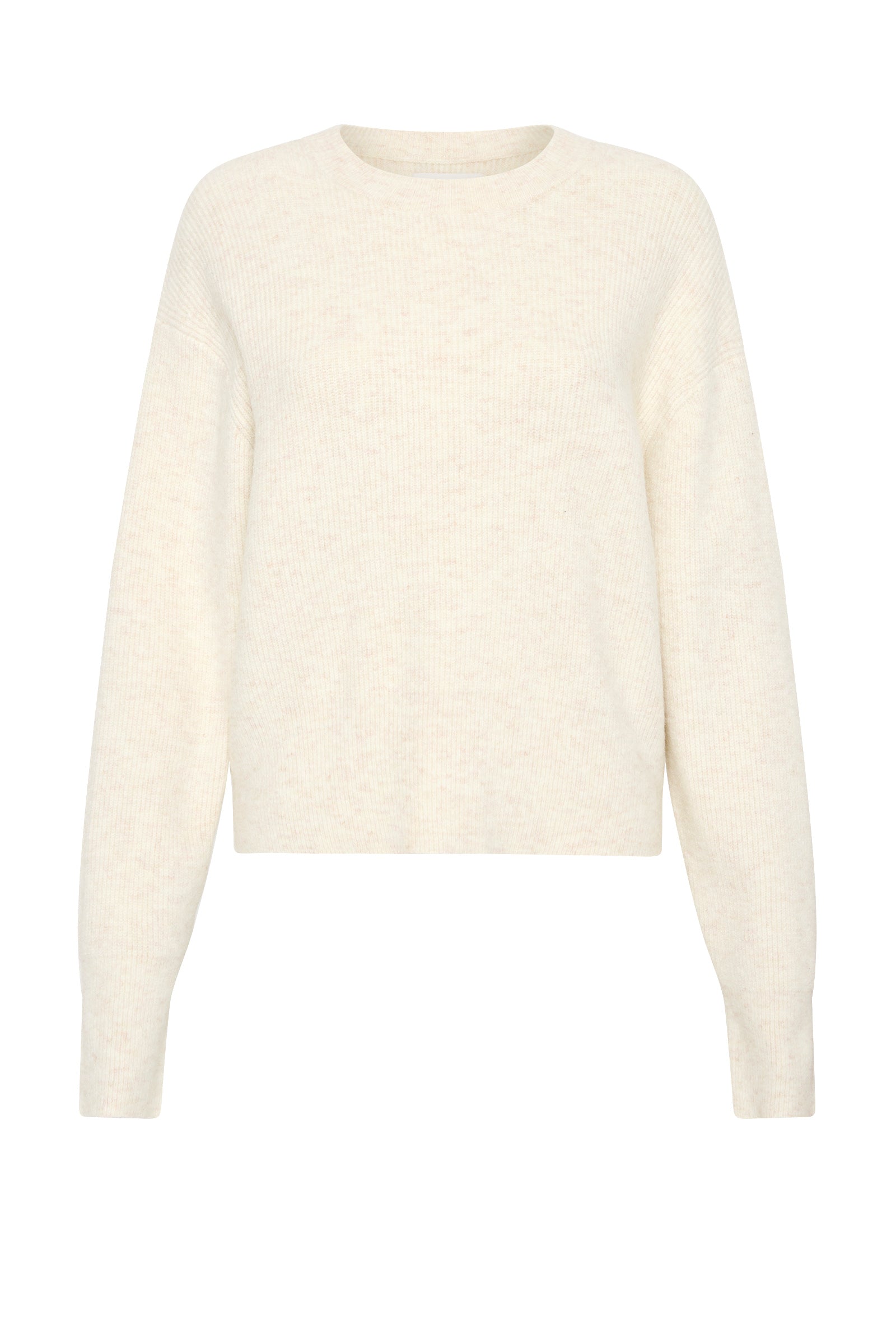 The Prado Knit is made from a soft midweight yarn with subtle fluffy texture. The silhouette is relaxed with drop shoulder and long sleeves. Features include a crew neckline and rib at neckline, hem and sleeve cuff.
