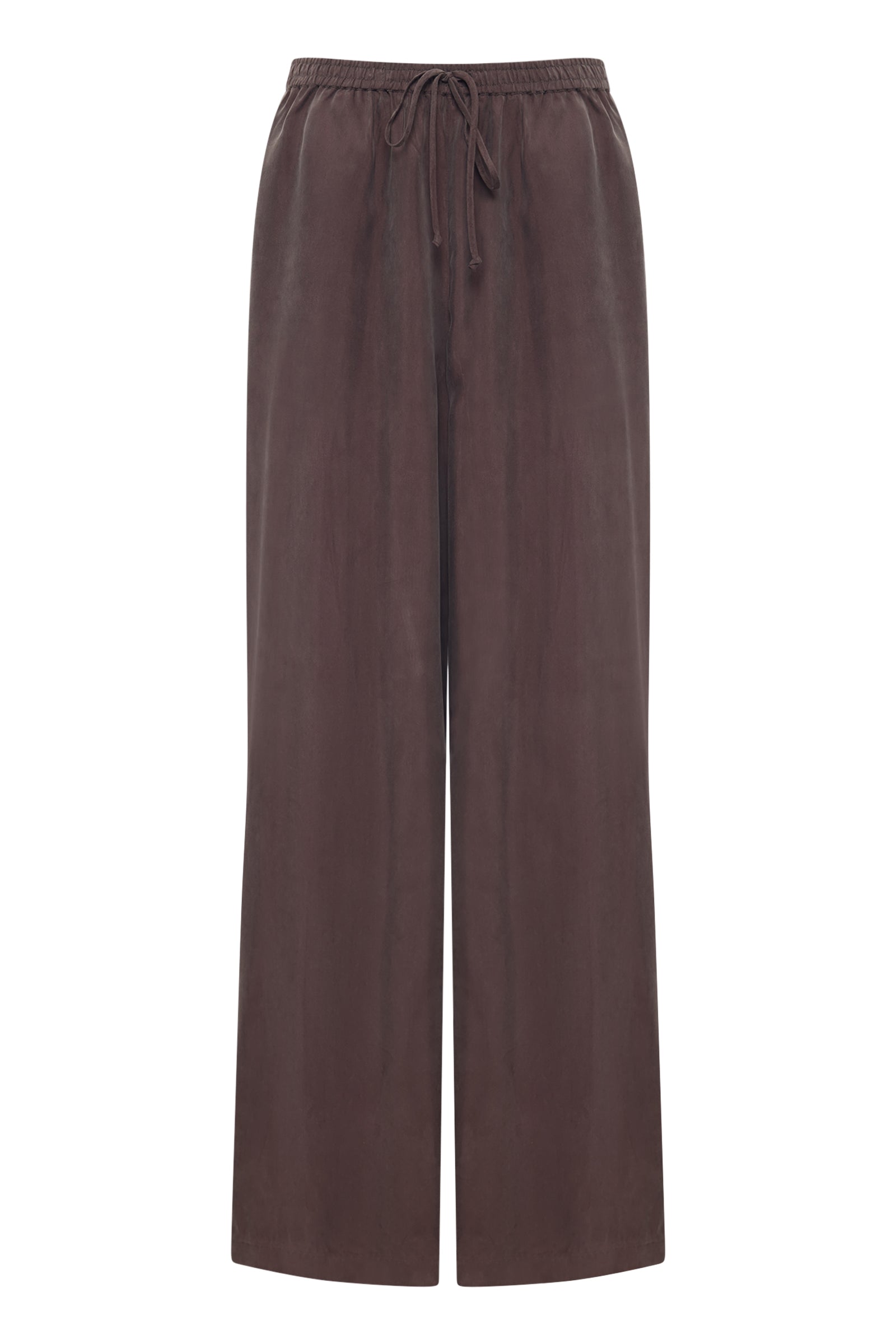 The Raven Cupro Pant is made in our signature cupro fabrication with a smooth suede hand feel. The silhouette is a relaxed wide leg, full length pant. Features include an elasticated waistband with drawcord and side seam pockets.