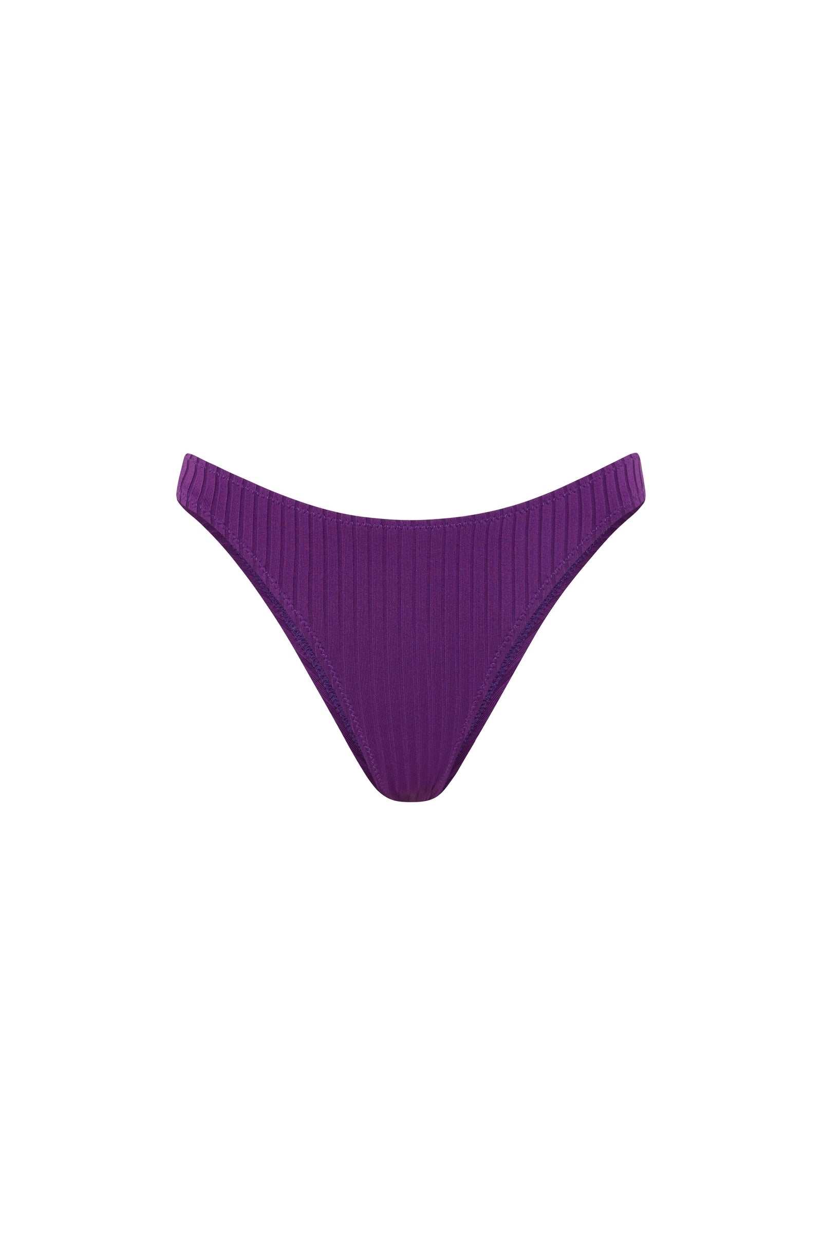 The Rib Cheeky Brief is made from a premium recycled stretch fabrication with a soft hand feel and wide rib.  The bottom has a low rise and high leg that can be pulled up or down. This bottom is fully lined with cheeky back coverage.