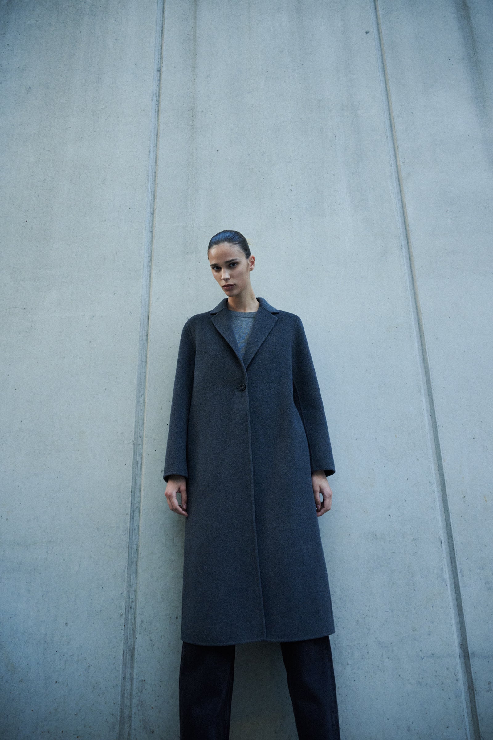 The Riley Wool Coat is made from a classic thick wool blend fabrication which has a soft, warm hand feel. The silhouette is relaxed with a lapel collar, dropped shoulder and length finishing above the ankles. Features include button front opening, side seam pockets and back vent.