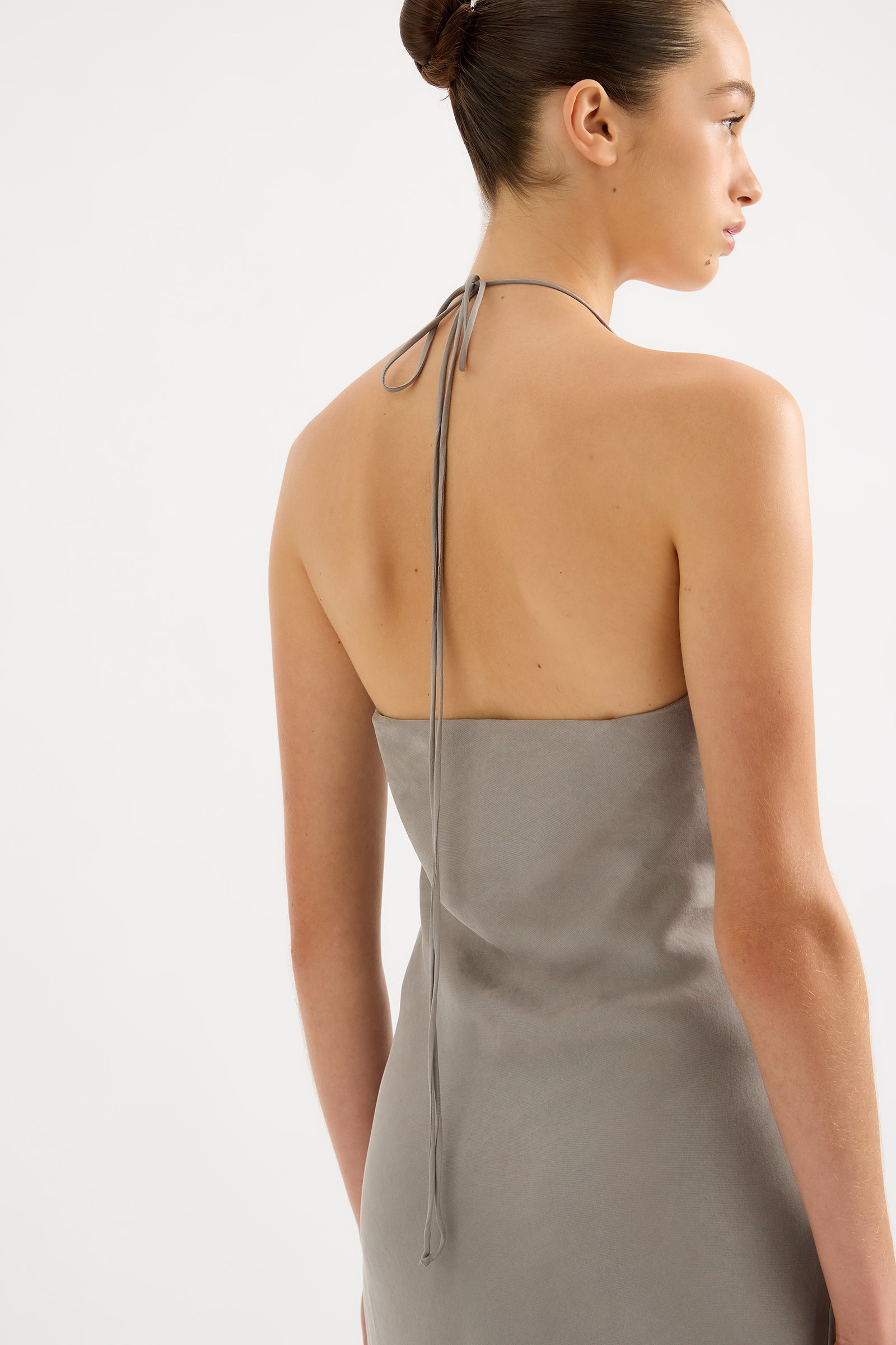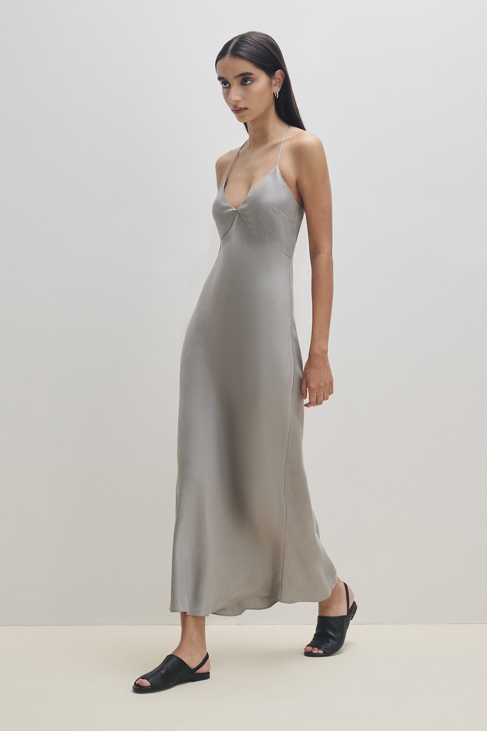 The Rylan Slip Dress is made from a Tencel blend fabrication with a soft, sueded hand feel. Cut on the bias, this silhouette drapes over the body softly and finishes above the ankle. Features include a v neckline and thin cross back adjustable tie straps.