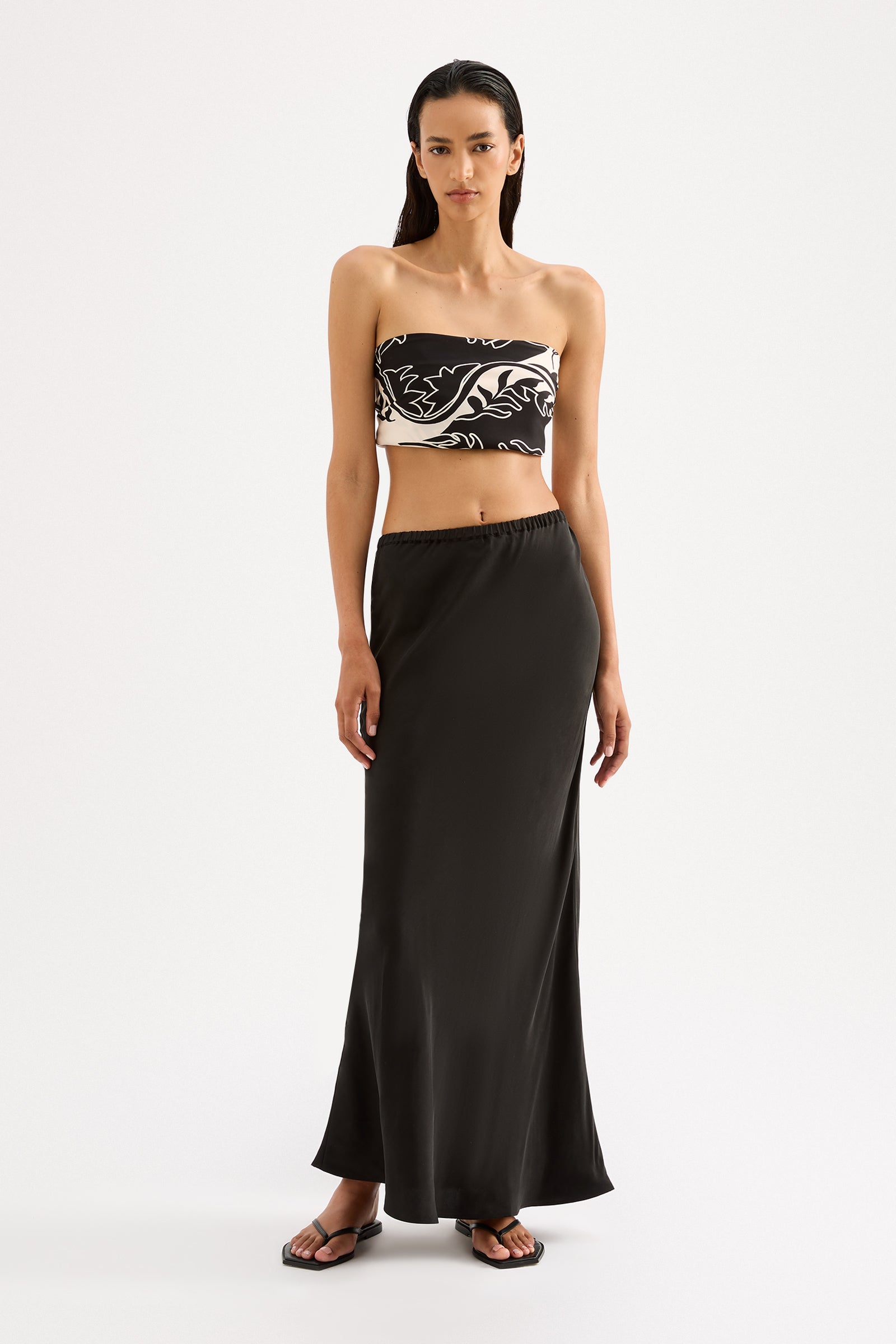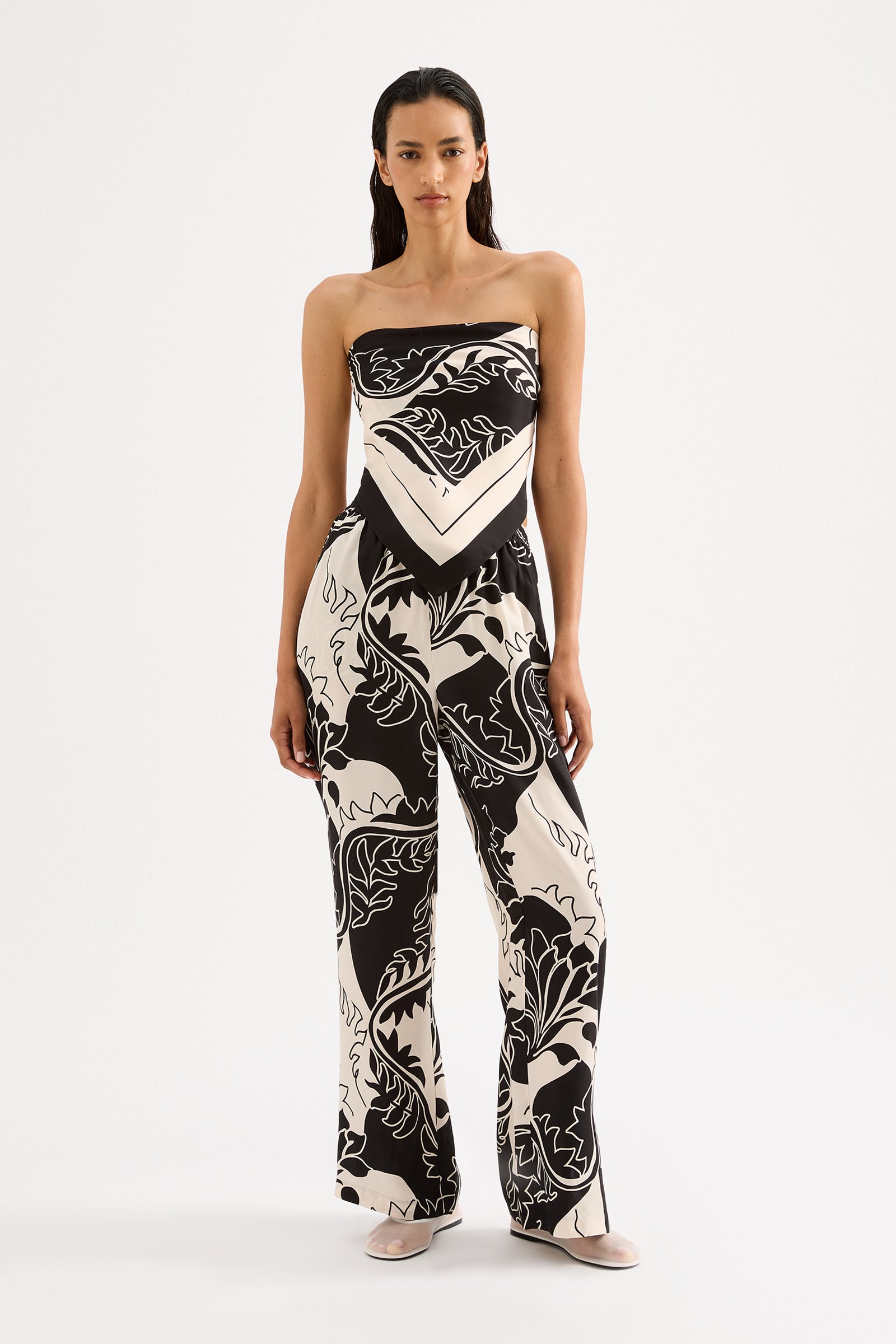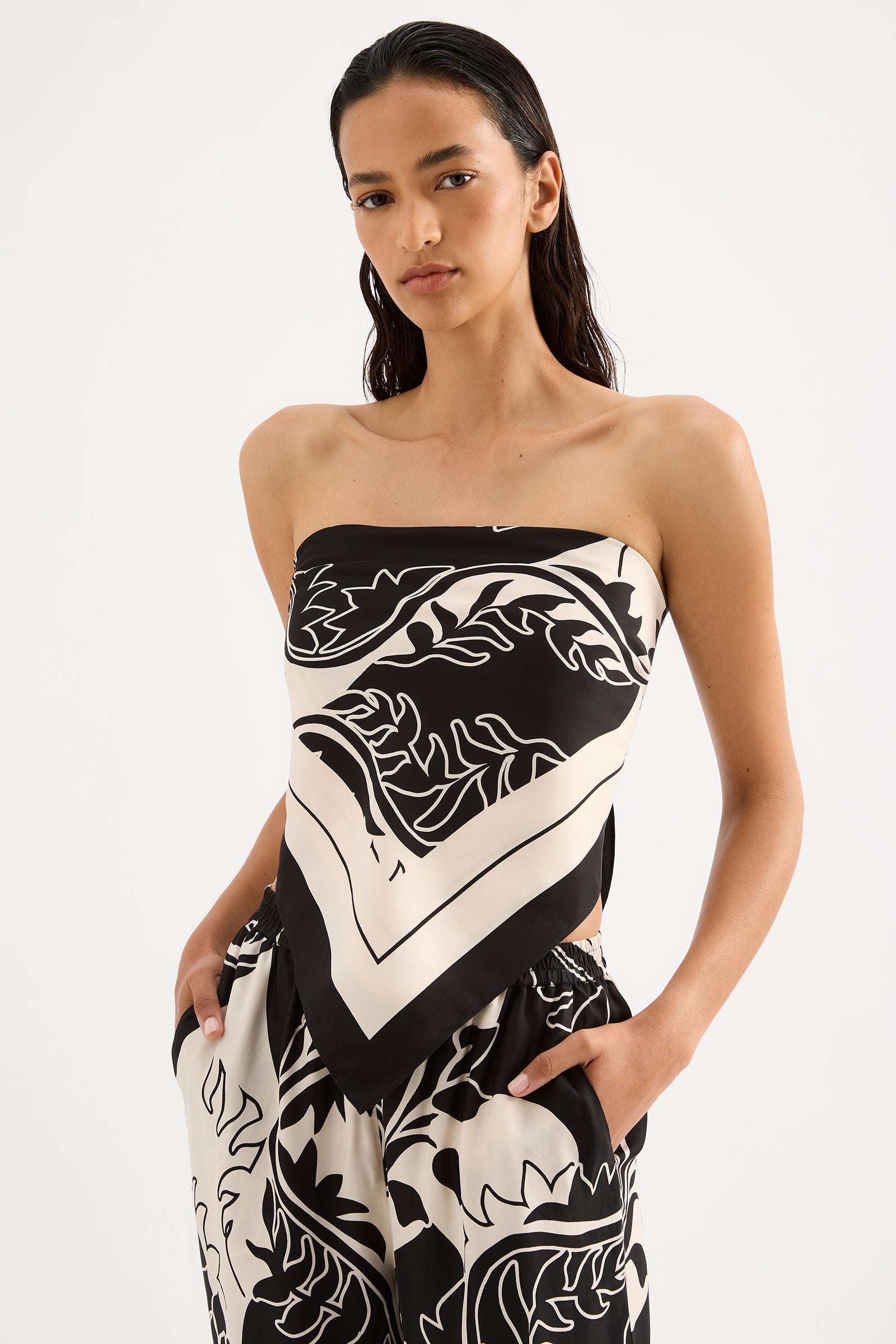 The Salvador Cupro Scarf is made in our signature cupro fabrication in our exclusive Salvador print. The scarf is a smooth single layer piece with a neat double turned hem. Designed with versatility, this scarf can be worn as either a top, head scarf, or bag accessory.