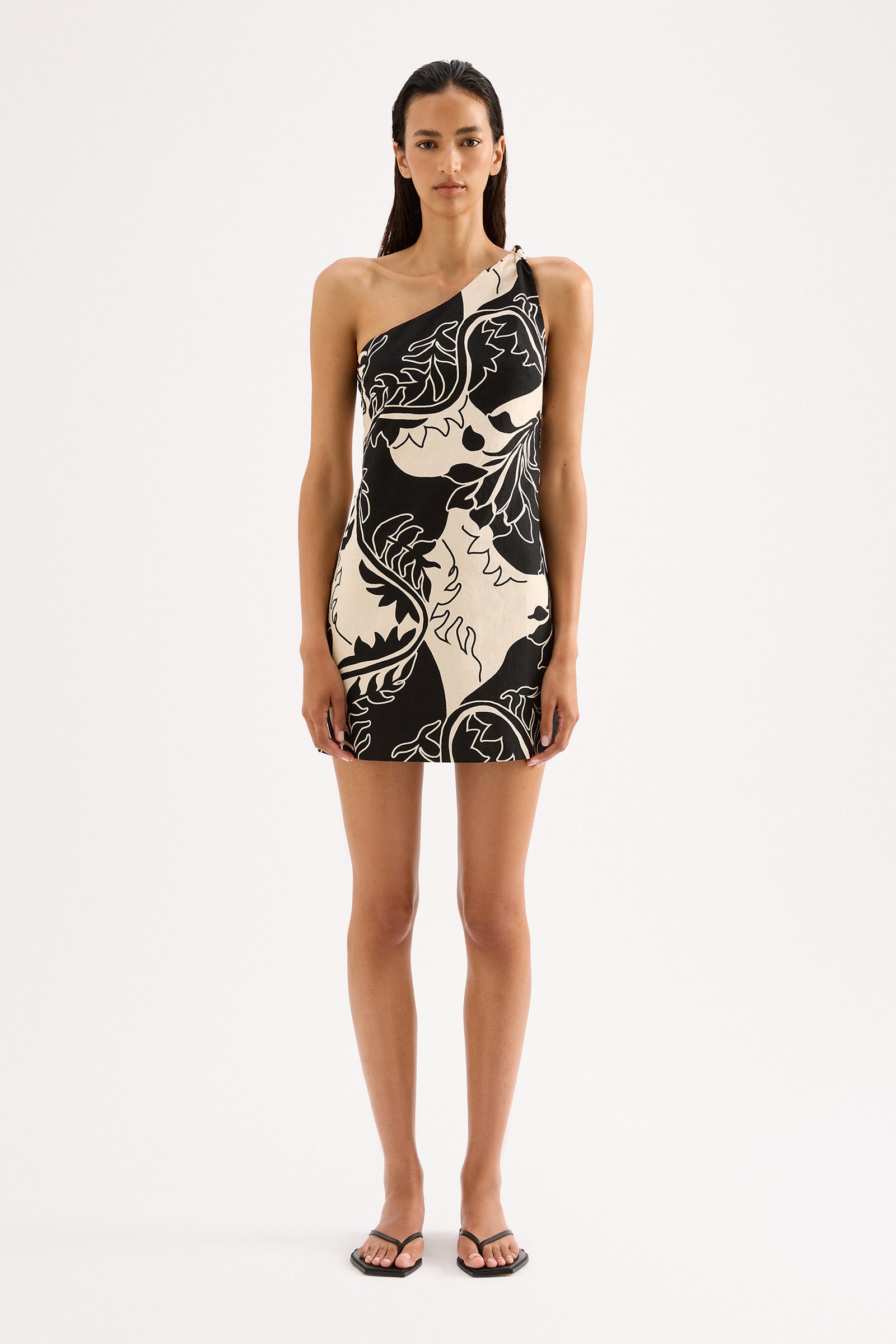 The Salvador Mini Dress is made from a linen blend fabrication in our exclusive Salvador print. The silhouette is feminine with one thick shoulder strap, fitted waist and mini A-line skirt. Features include shoulder strap twist detail, gripper tape on inside neckline and invisible zipper. This dress is fully lined.