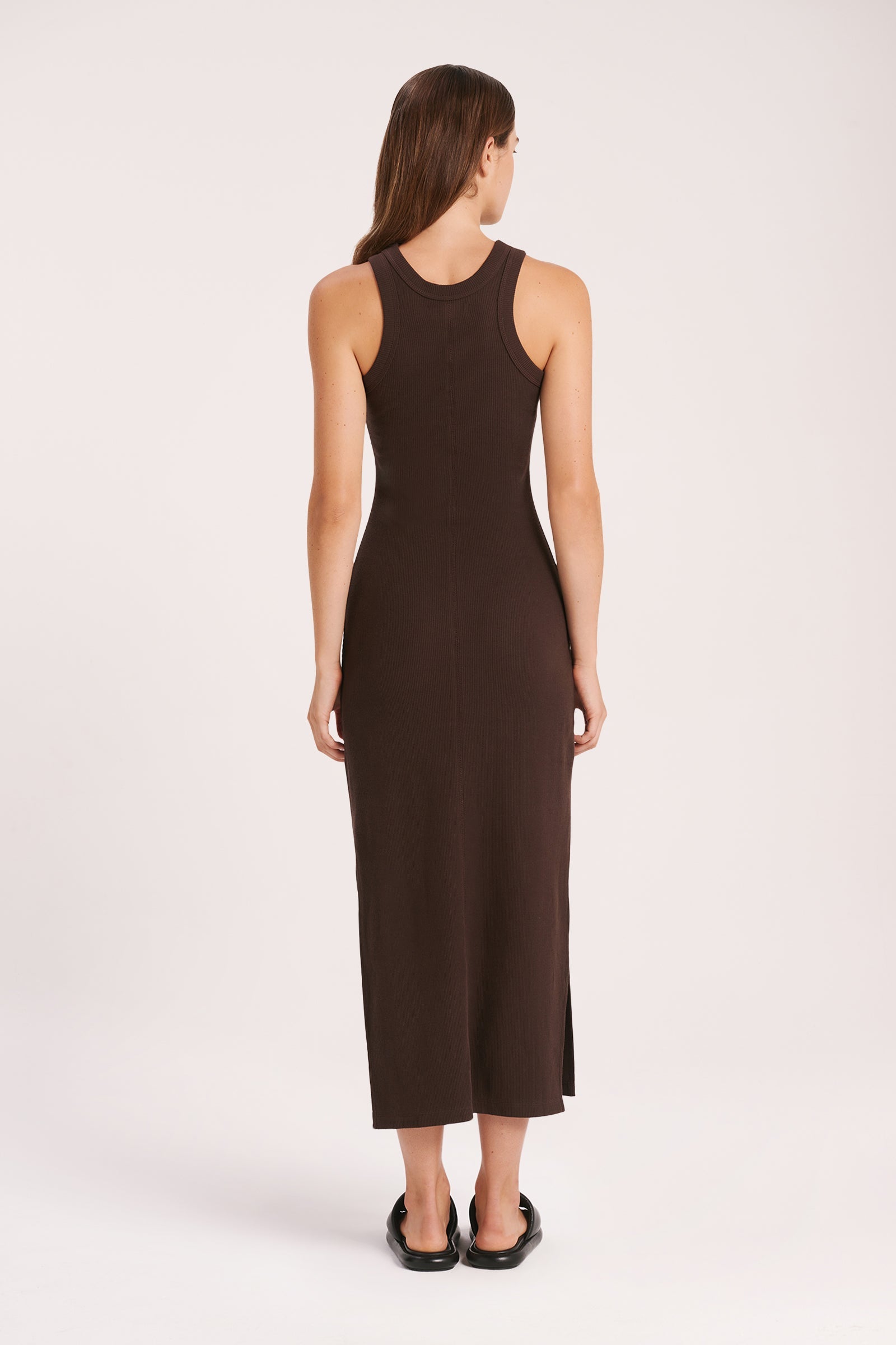 The Sia Waffle Dress is made from our signature waffle stretch cotton. The silhouette is a comfortable close fitting with the length finishing just above the ankle. Features include a subtle waffle texture, a scoop neckline with racer back, and side seams splits for ease and comfort.