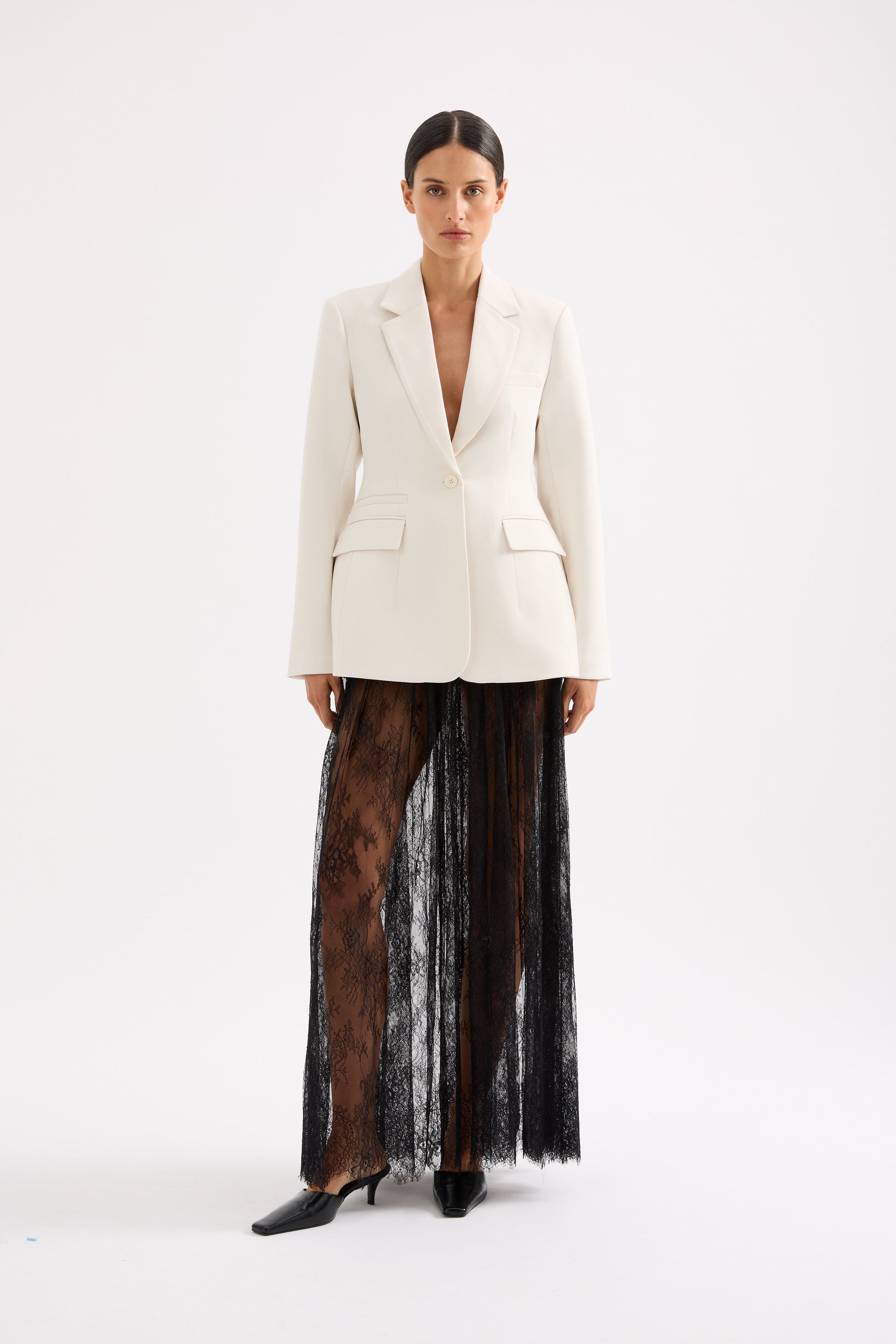 The Sian Lace Maxi Skirt is made from a premium lace fabrication with a delicate floral pattern. The A-line silhouette is high waisted and maxi in length. Features include an elasticated waist band and scalloped lace hem.