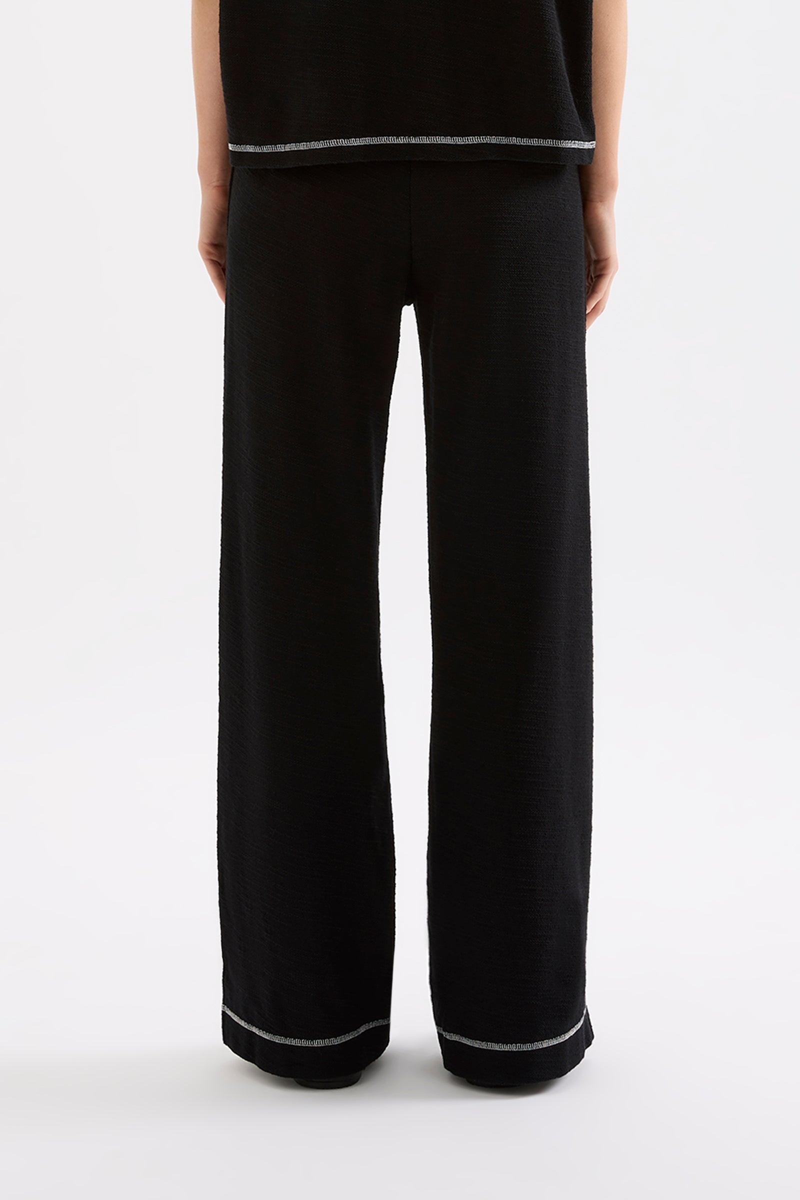 The Sutton Pant is made from a textured cotton/linen blend fabric that is soft on the skin. The silhouette is a relaxed fit, high waisted, full length pant. Features include an elasticated waistband, contrast stitch detail, splits at hem and side welt pockets.