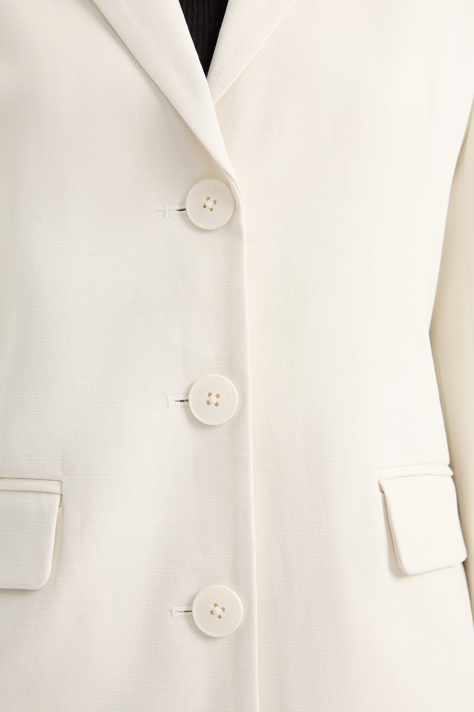 The Tait Blazer is made from a mid weight Tencel/cotton fabrication which has a textured hand feel. The silhouette is a structured single breasted shape with classic sloped shoulder, relaxed to slim fit body & full length sleeve. Features include traditional tailoring detailing throughout including branded buttons, tailored vents at sleeves and back of body.