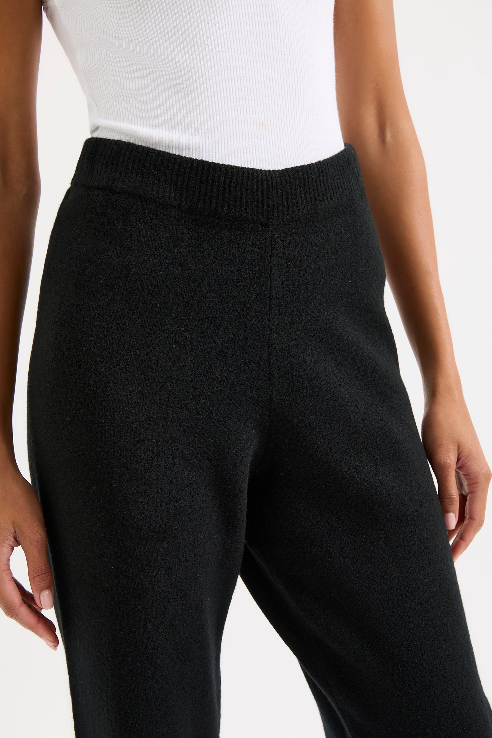 The Taylor Knit Pant is made from a midweight yarn which is super soft and has a subtle fluffy texture. The silhouette is a high rise, full length pant with a straight leg. Features include a soft rib elasticated waistband.