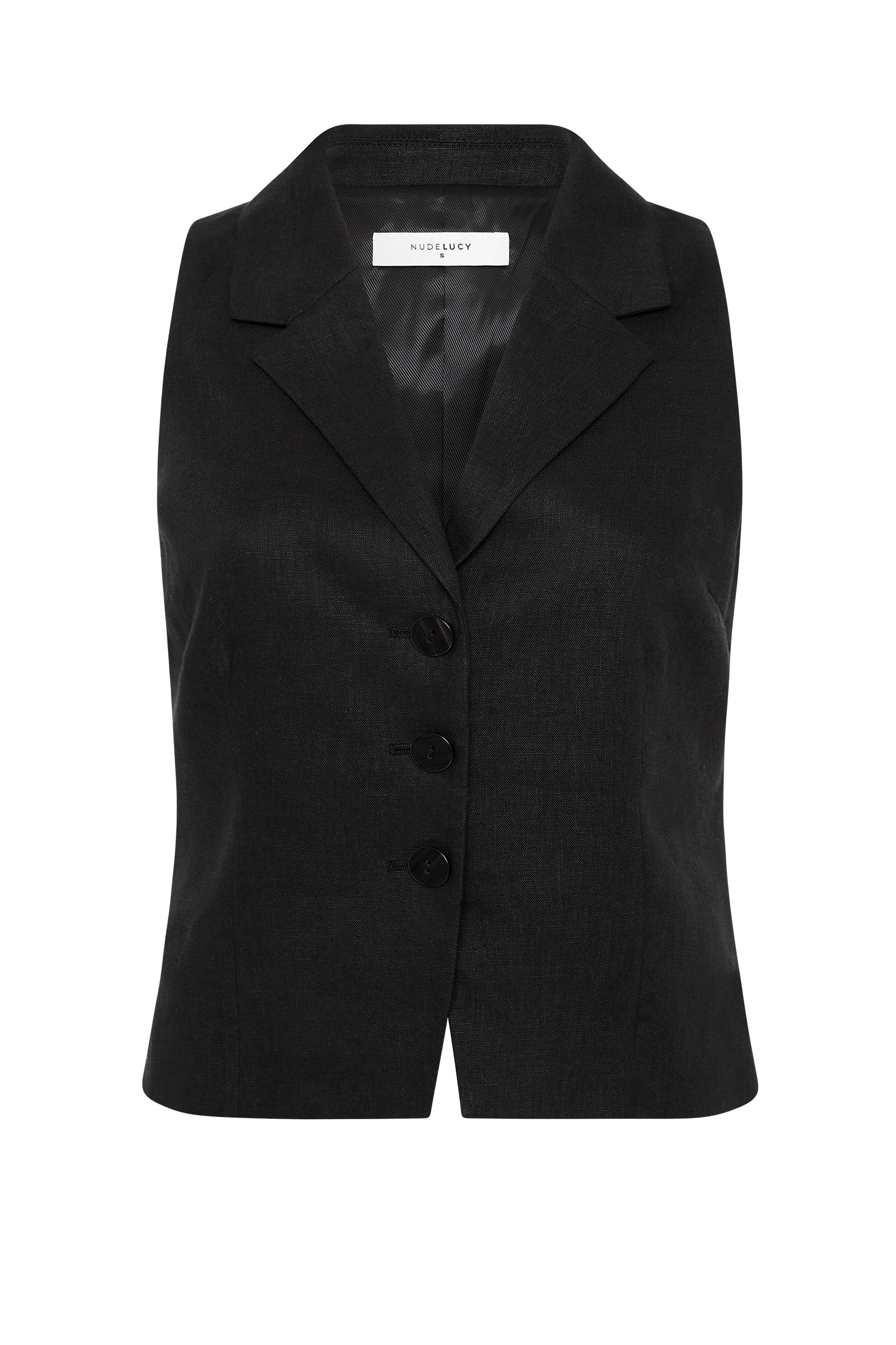 The Thilda Linen Vest in black is made from 100% linen which has been washed for a soft, breathable hand feel. The silhouette is tailored and slim fitting with a button front opening. Features include a deep v neck, traditional collar and shell buttons. The Thilda Linen Vest is fully lined.