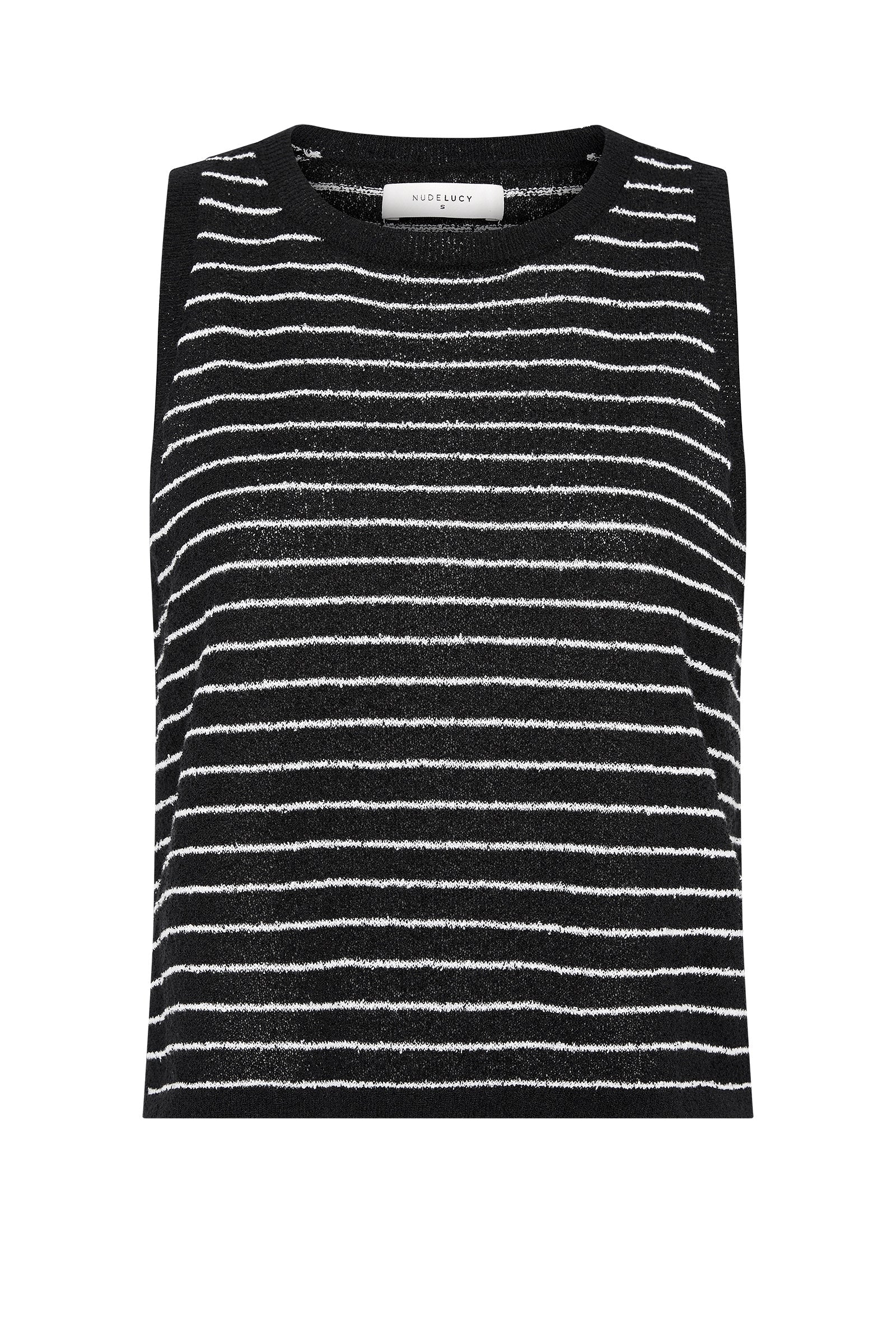 The Zosia Stripe Knit Tank is made in a lightweight, textured knit with a dry hand feel. The silhouette is relaxed, with length finishing at the hips. Features include a narrow crew neckline and a stepped hem with side seam slits.